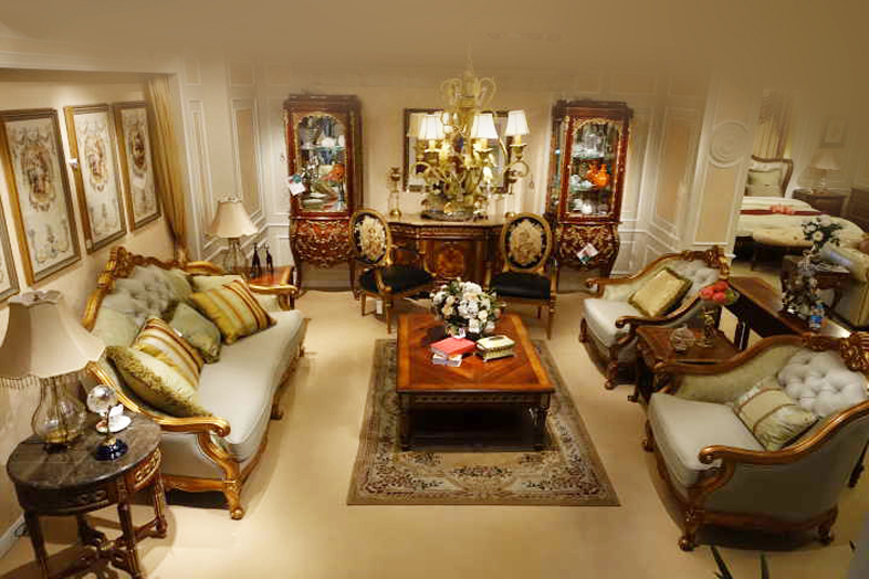 讀懂富豪崇尚尊貴品位、舒適體驗的生活追求,從法國金碧輝煌的凡爾賽宮捕捉宮廷家具的設(shè)計靈感,用細膩的實木鑲嵌及描金工藝打造豪宅應(yīng)有的奢華氣派。