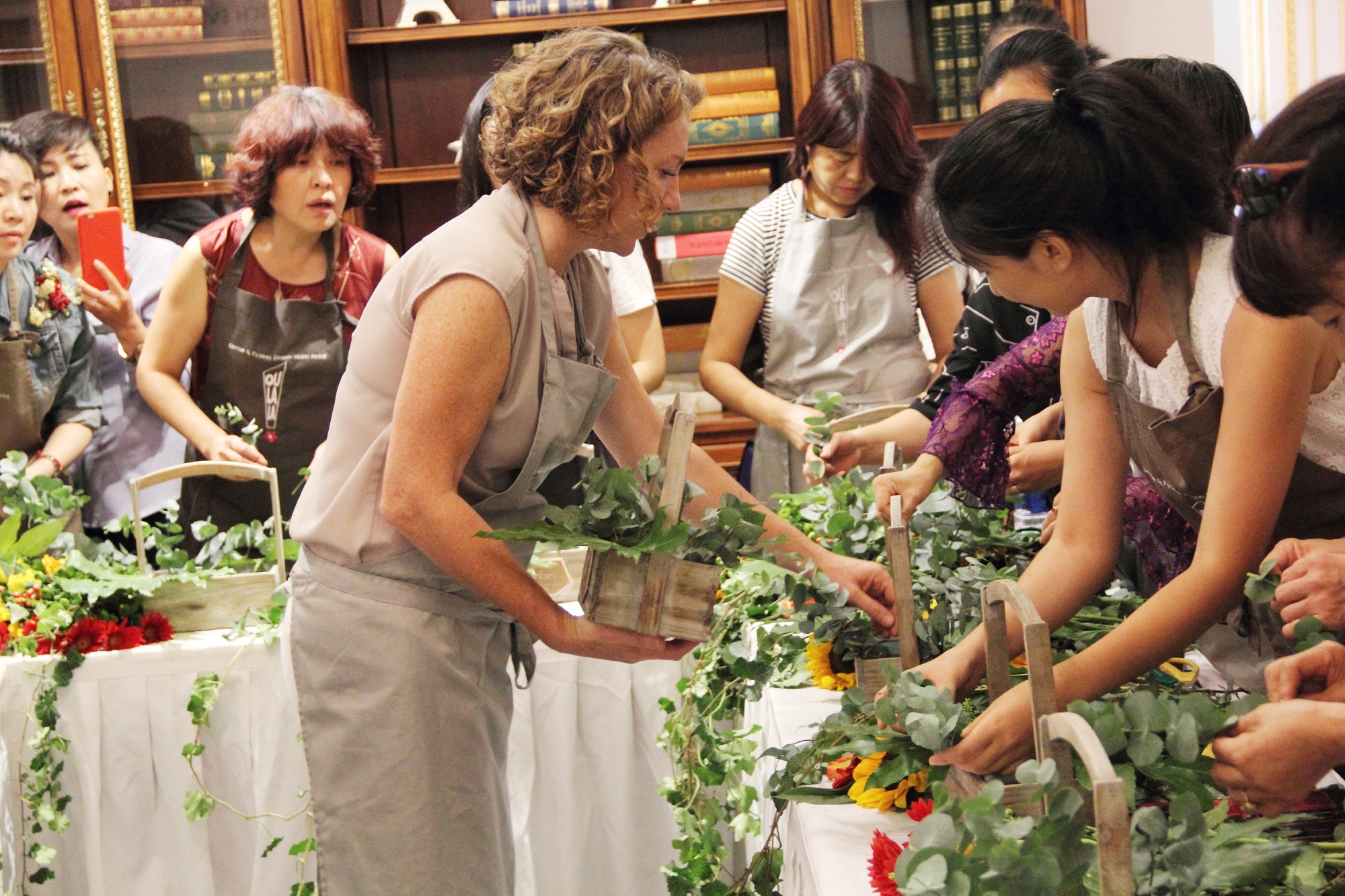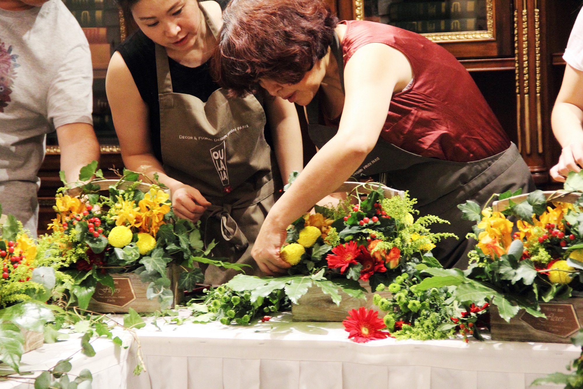 在Carole Delavelle耐心的分享指導之下,活動參與者便紛紛領悟其中的方法技巧,根據自己的巧思妙想開始花藝創作之旅。