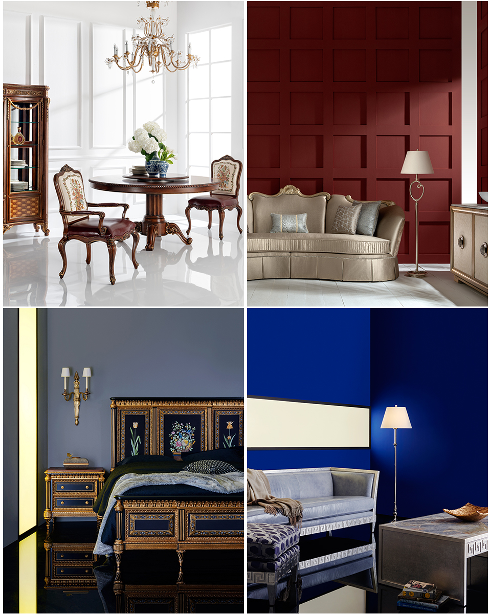 古典唯美的意式風情多以古希臘古羅馬家具作為創作靈感,洛可可線條、羅馬柱、描金工藝、阿坎賽斯葉狀雕刻,彩繪拼花……凝練文藝復興時代的雍容華美。