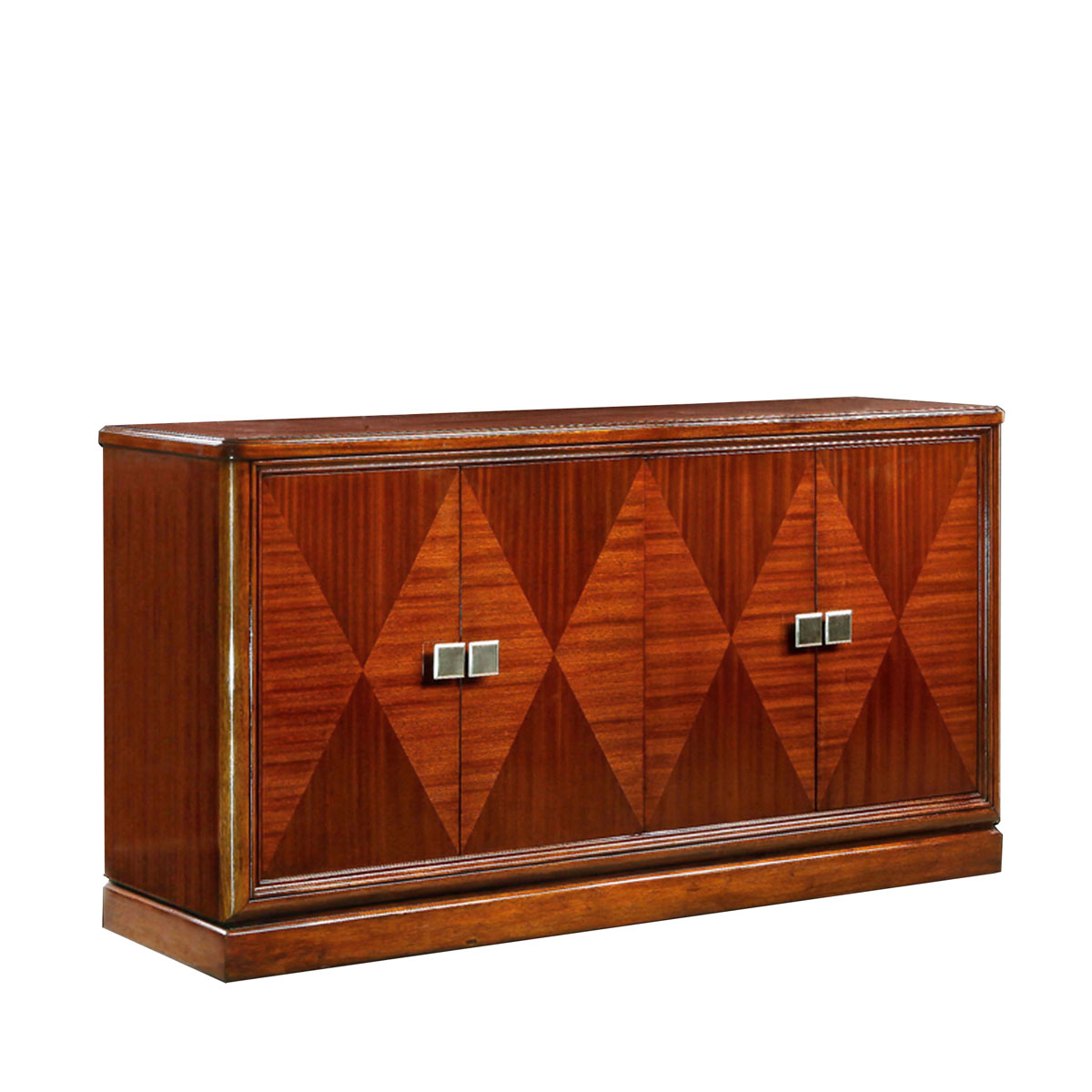 * 門面的鉆石形薄皮拼接圖案,使變遷風格得以完美。 * 精致的邊框線條。 * 簡約的外形設計。 * 前柱與頂端呈現優雅地半圓柱形。 * 拉絲鎳色五金。
