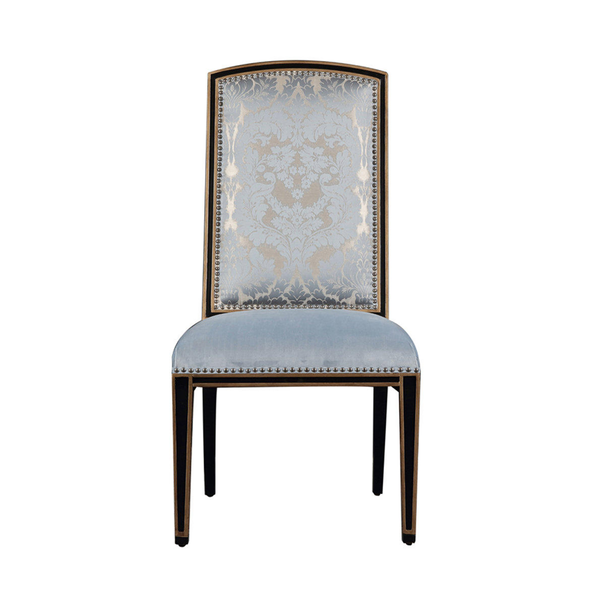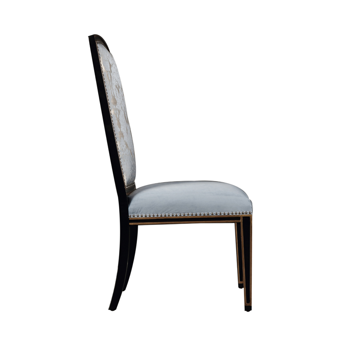 英吉利餐椅用藍灰色為主色,搭配少量黑色木質(zhì)邊框,質(zhì)感突顯,高貴典雅;藍灰色軟裝截取一半藍色的沉穩(wěn),一半灰色的質(zhì)感,成為另類失重的色彩表達。讓餐廳氣質(zhì)瞬間up!