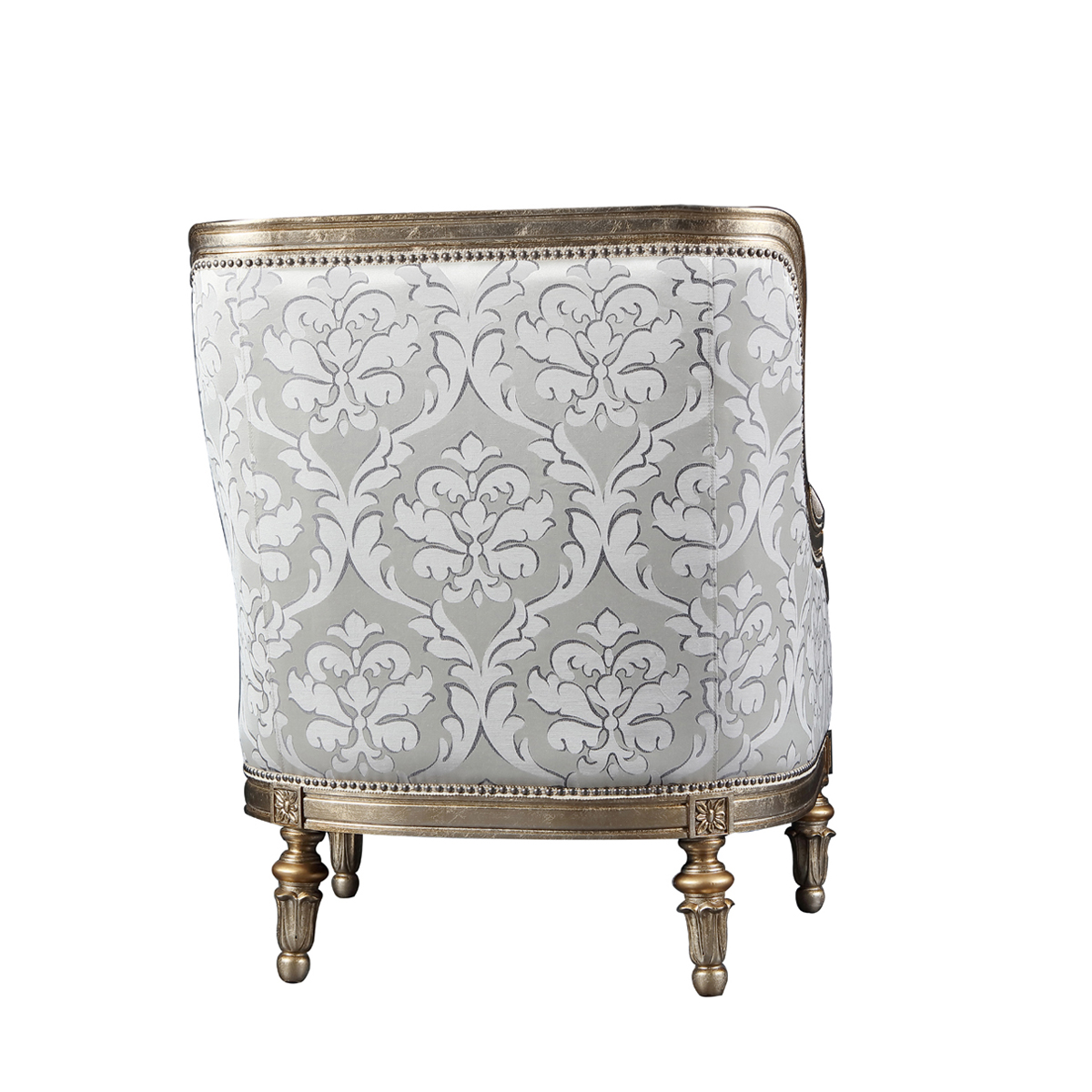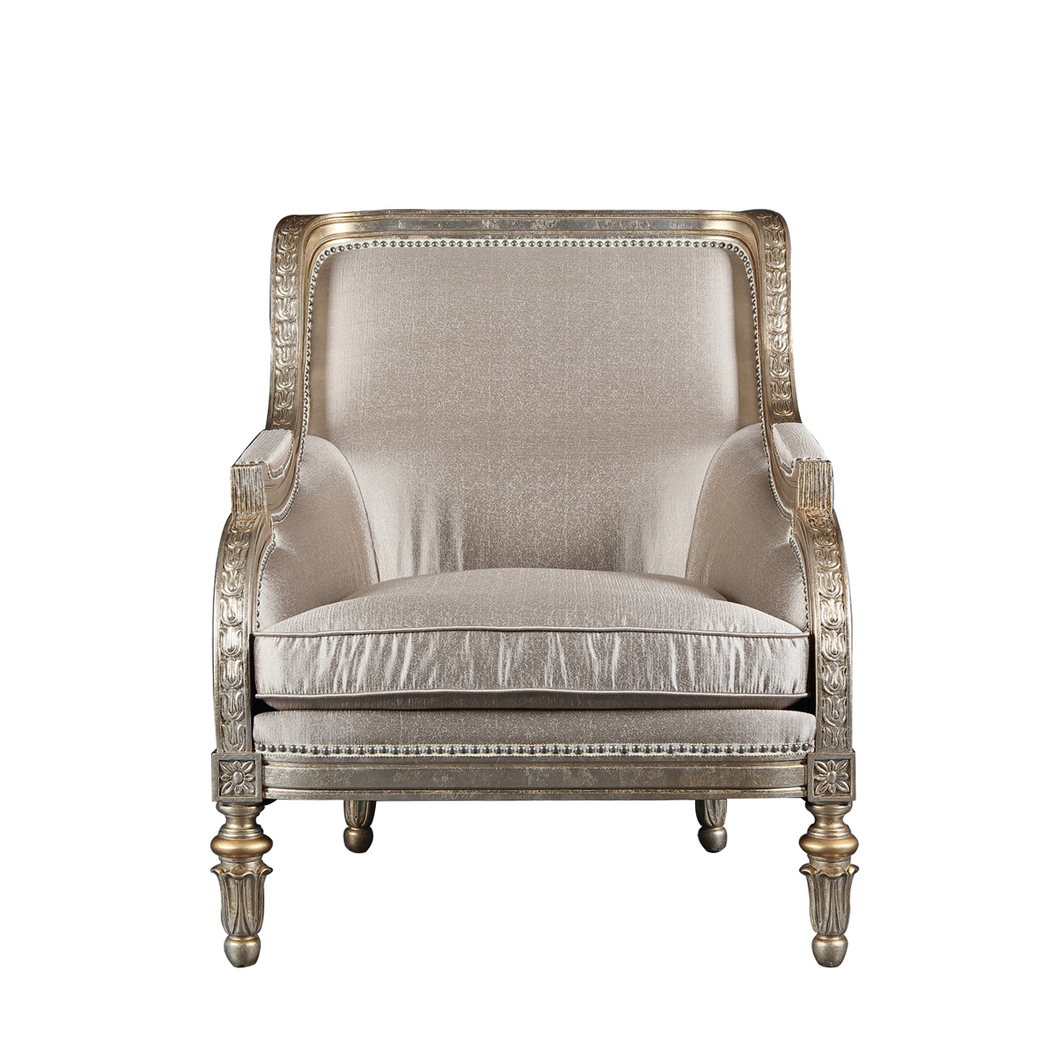 復古而有時尚感的香檳金涂裝,喚醒輕奢時尚;井然有序的雕刻,栩栩如生的花紋裝飾,使它不論從任何角度欣賞,都愈加美不勝收。含苞待放的鈴蘭花雕刻椅腳增添知性的魅力,綻放氣質光彩。