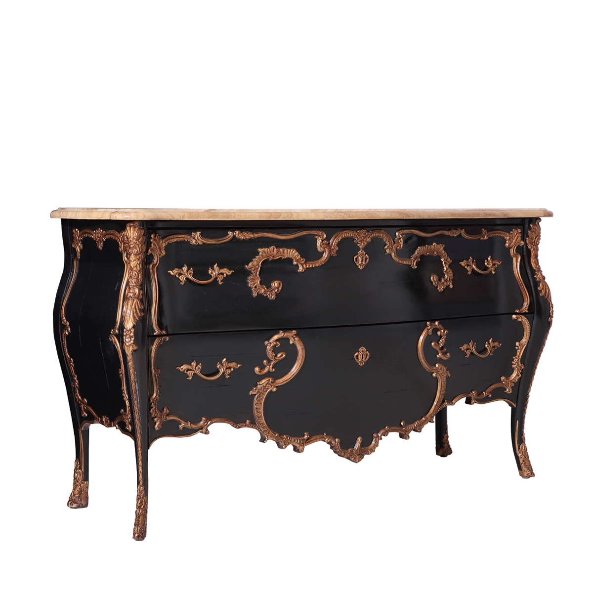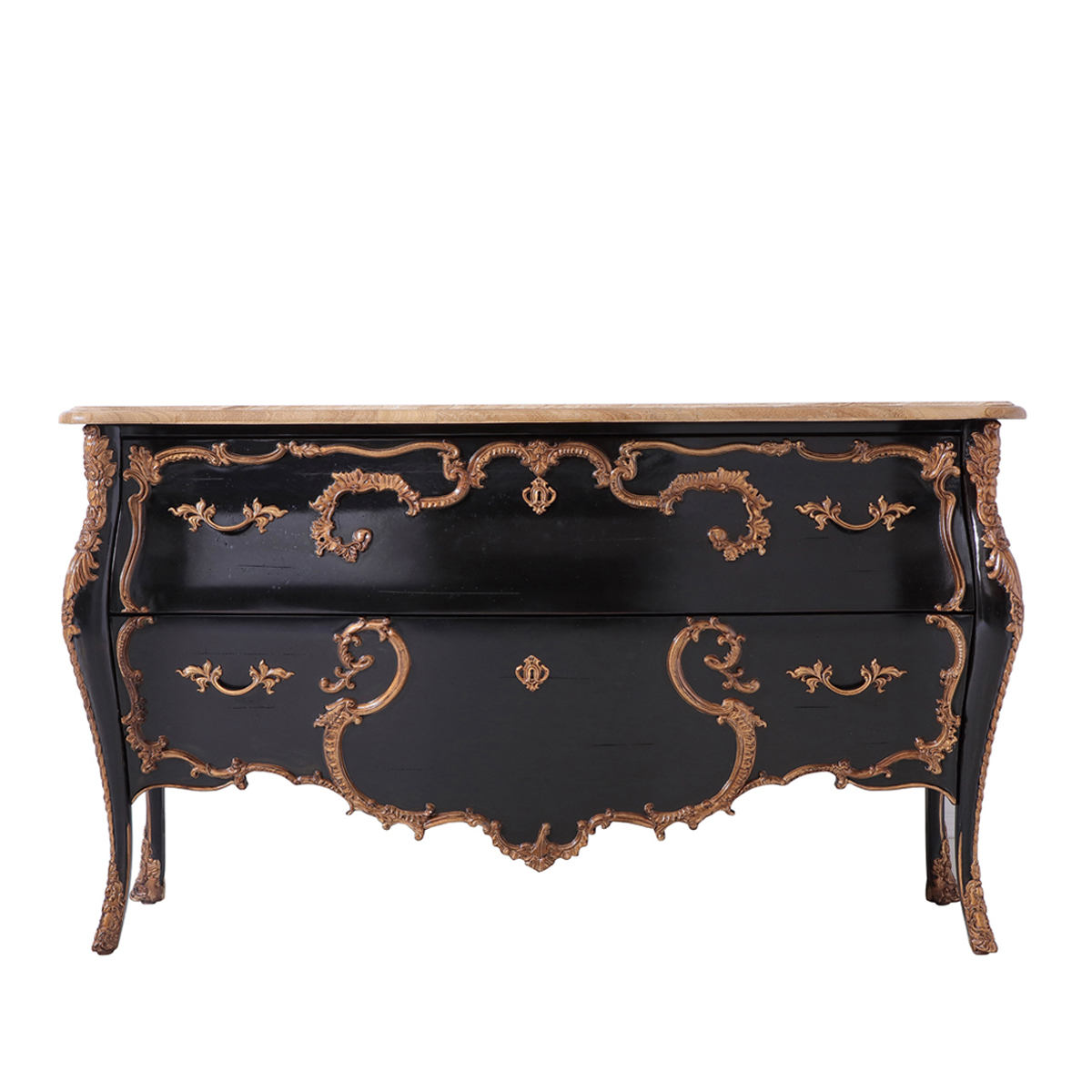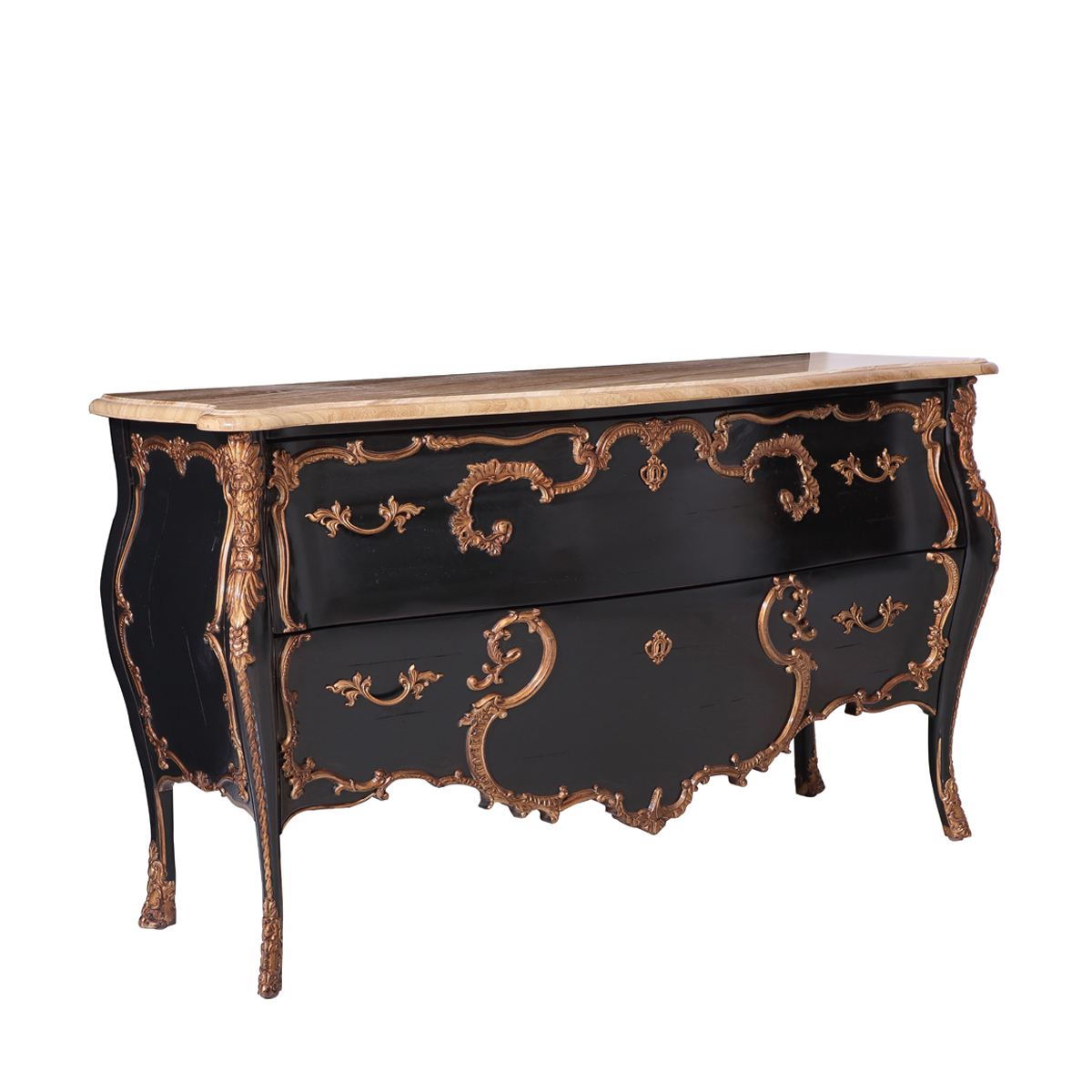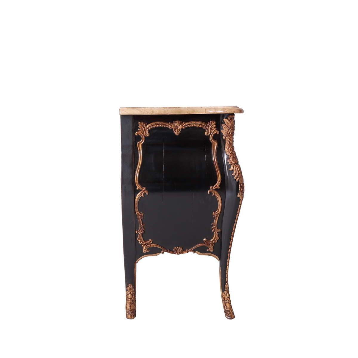 以 Louis VX (路易十五)時期洛可可式涂金古董柜為設計靈感,華麗的曲線輪廓配以細膩的雕刻,呈現出法國宮廷的浪漫。黑金對比強烈的色彩配搭,更是把洛可可風格的奢華表達得淋漓盡致。