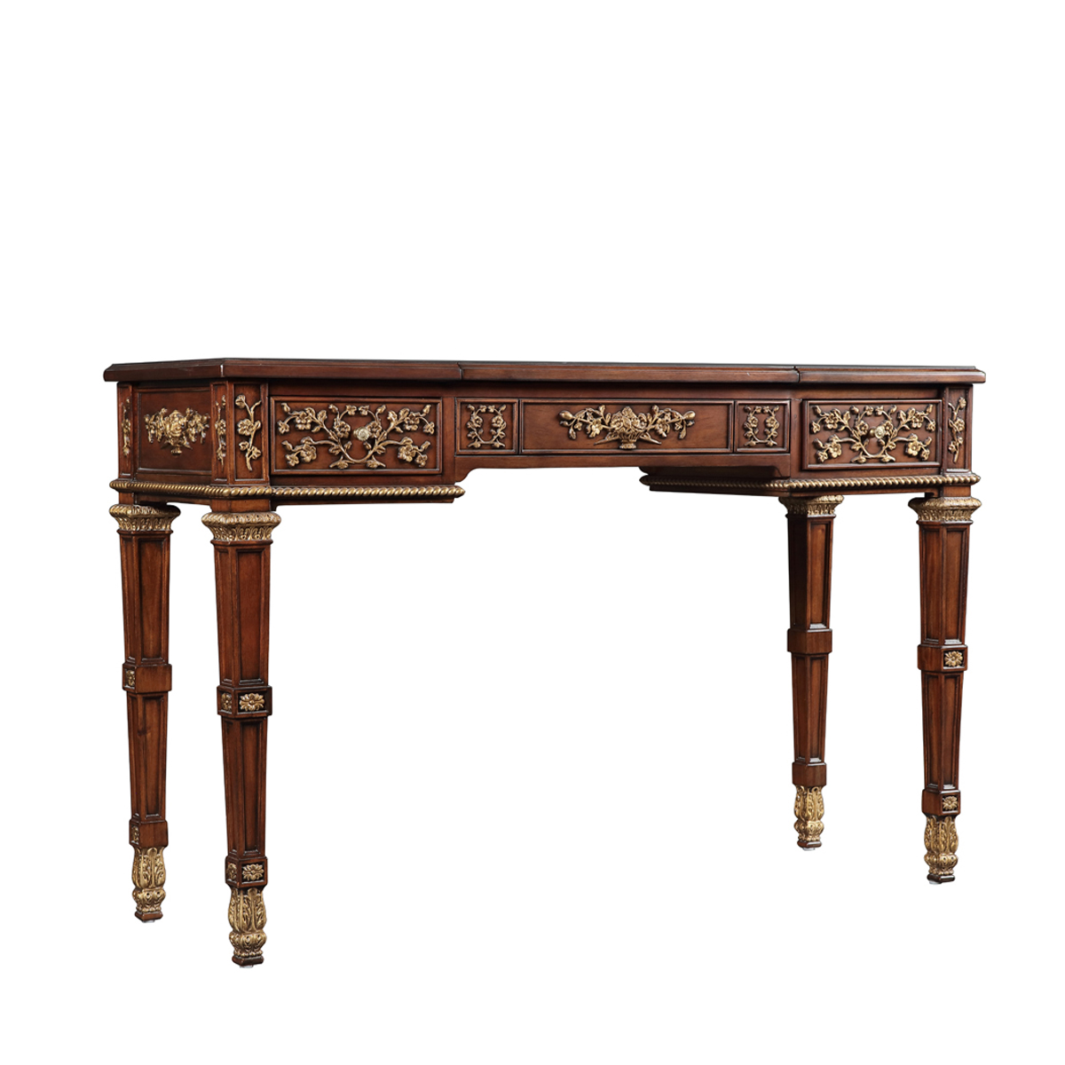 花草雕刻是安妮女王的園藝寫照,羅馬凹槽柱雕刻、貼金工藝都是匠心打造。貼仿金箔的璀璨光澤帶著決策者的尊貴威嚴,在細節處的精致彰顯生活的品質。