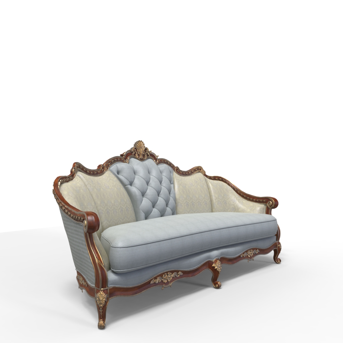 以路易時期新古典風格為設計靈感,以作為歌頌太陽王象征的太陽花連環雕刻為設計元素;配以實木花環和卷葉雕刻,以及洛可可經典彎腿,將新古典的美表現得淋漓盡致。匠心手工拉扣捫包在霜灰色與香檳銀箔色的呼映下實現視覺享受,傾情演繹了法式宮廷家具的精致尊貴。