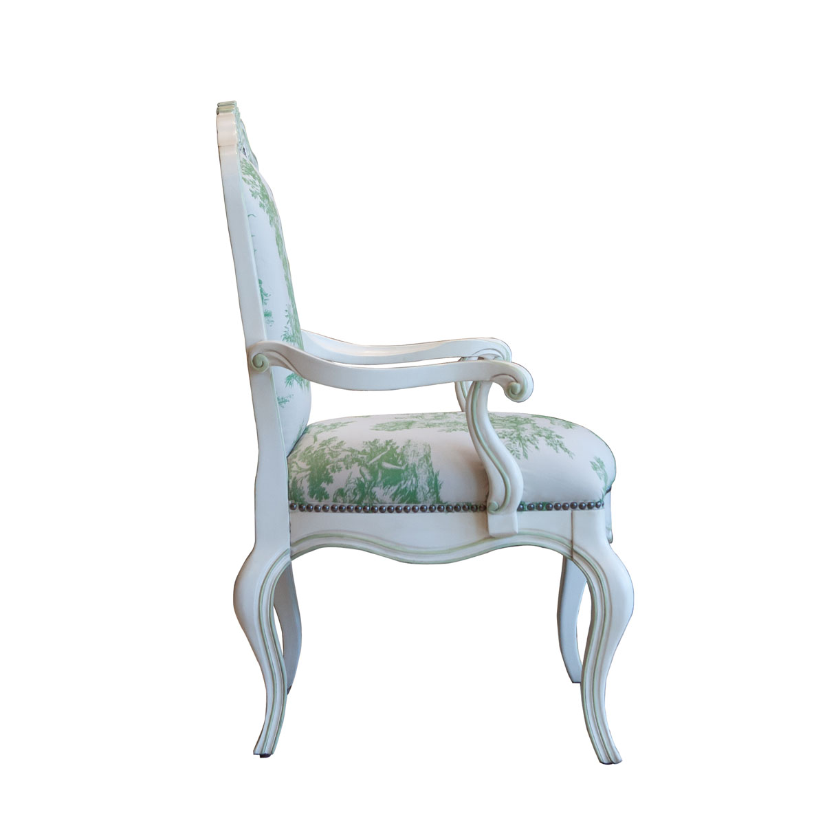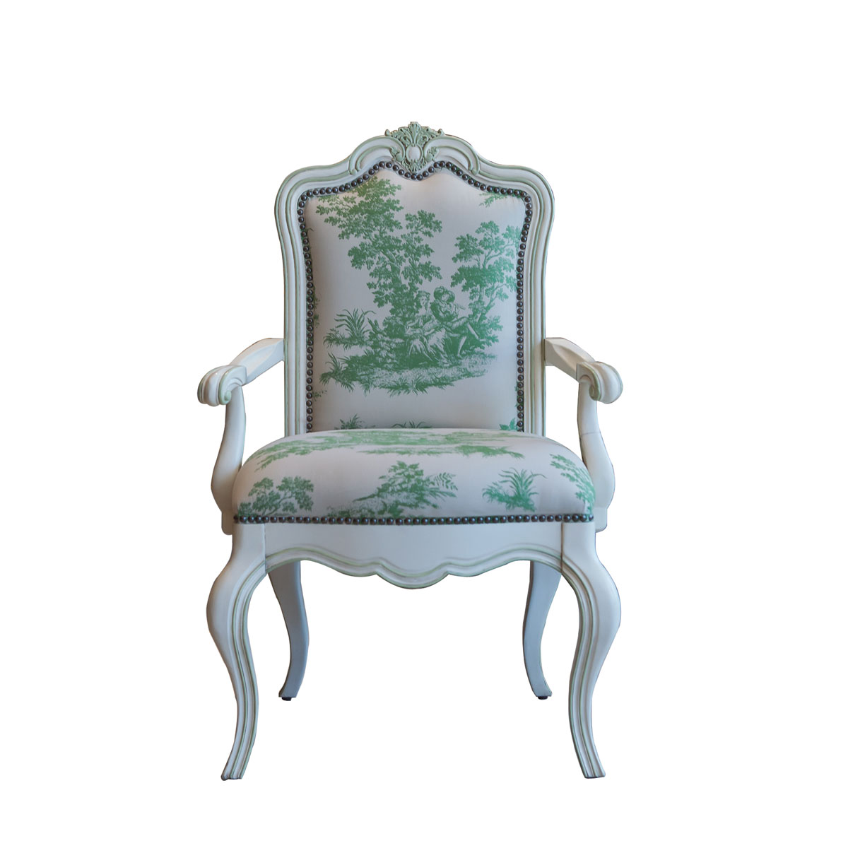 * 簡潔流暢的扶手椅腿線條猶如蜿蜒動感的溪水,古董白的素凈色調猶如空靈純粹的云朵,栩栩如生的蒼翠圖案引人無限遐想——那種在綠意盎然的季節(jié)結伴出游的歡樂你是否還記得?如果身體被繁華都市禁錮,也請心靈自由飛翔……