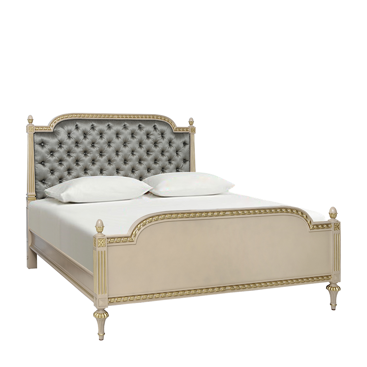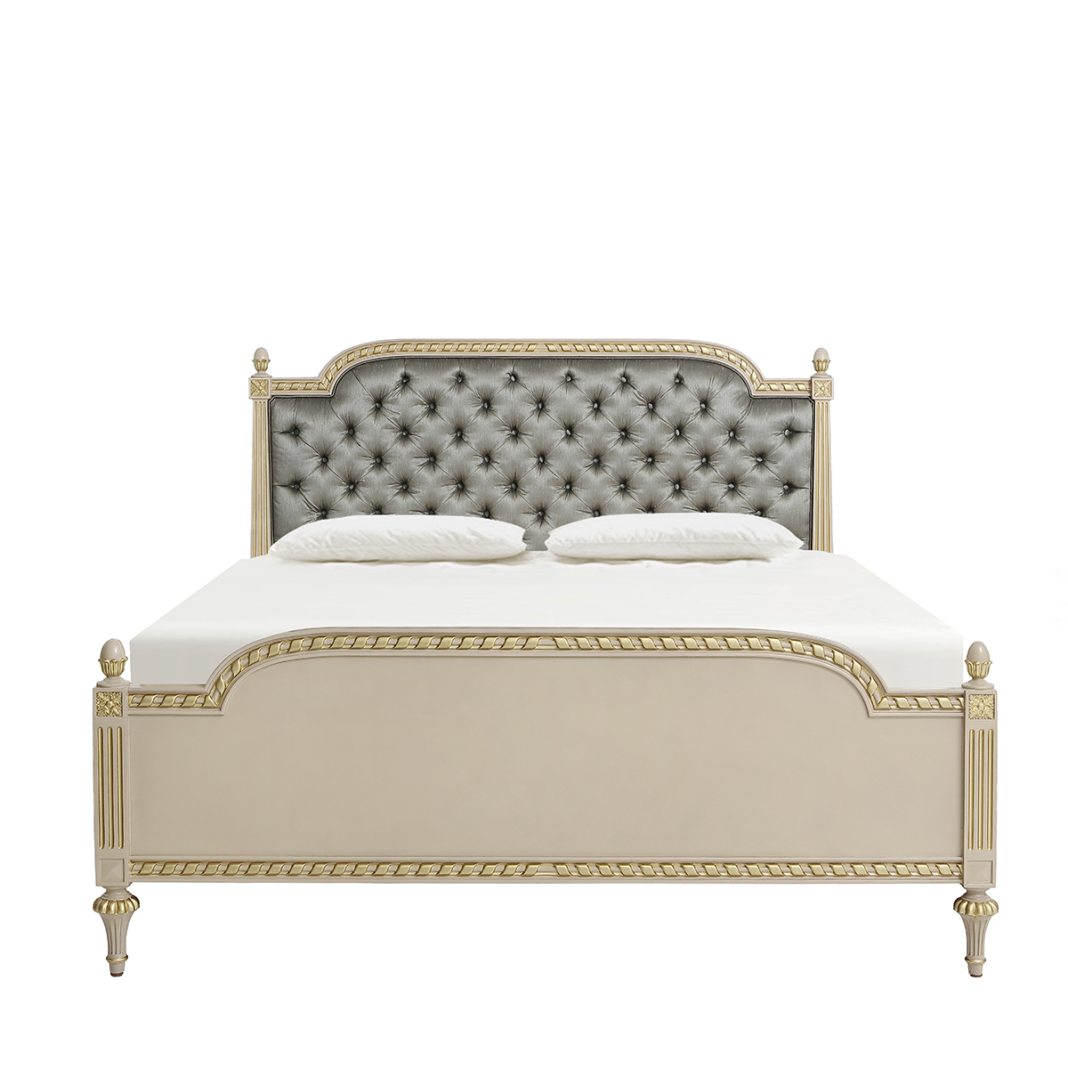 普羅旺斯矮柱軟包床藍(lán)灰交相輝映,視感醇透明亮而飽含著平靜優(yōu)雅力量;古舊金屬色調(diào)搶眼的裝飾其中,帶起一陣懷舊情愫。簡單的白、古舊的貼仿金箔雕刻與灰藍(lán)色配搭,于純凈的氣質(zhì)中呈現(xiàn)著輕奢的姿態(tài)。