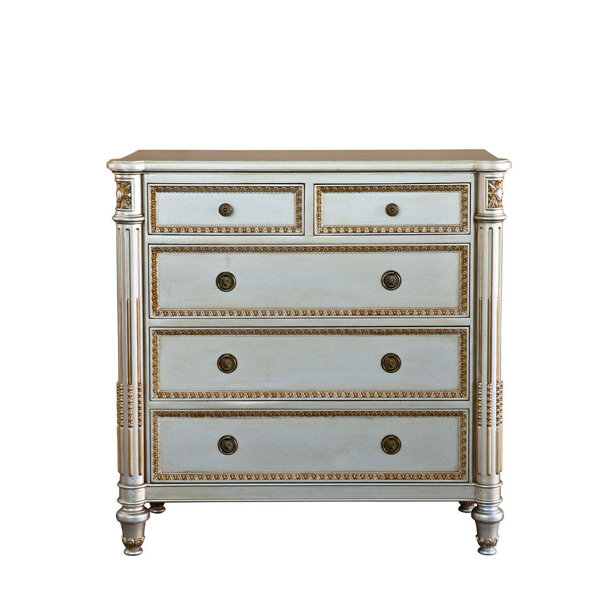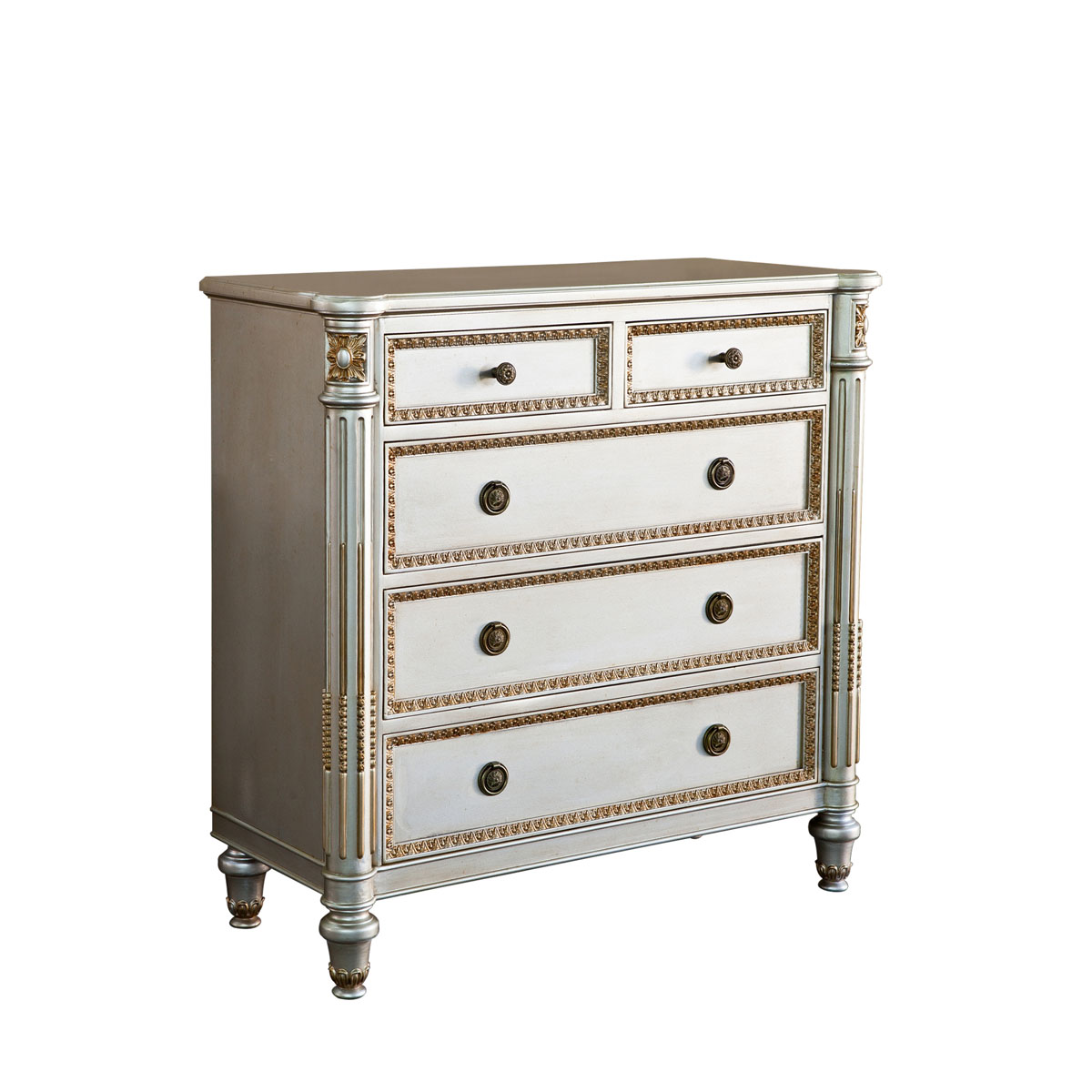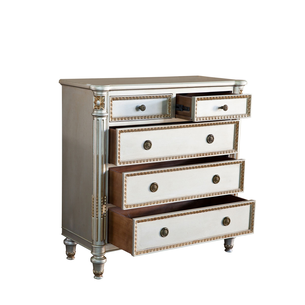 * 為表現(xiàn)法國路易時期的莊嚴(yán)和浪漫,以法國凡爾賽宮為設(shè)計元素。使用歌頌路易十四時期的太陽花雕刻;路易十六時期的建筑柱雕刻;顯示其王權(quán)穩(wěn)固地位的錐形腿腳設(shè)計、古銅色的球形把手和貼金工藝,完美演繹了法式宮廷家具的奢華尊貴。