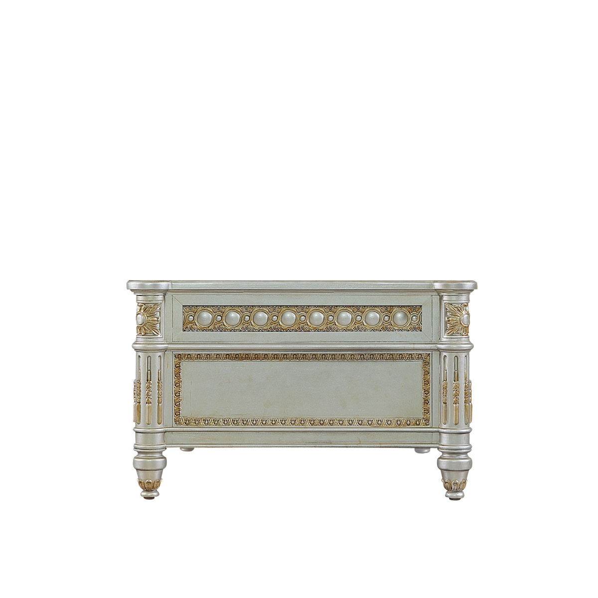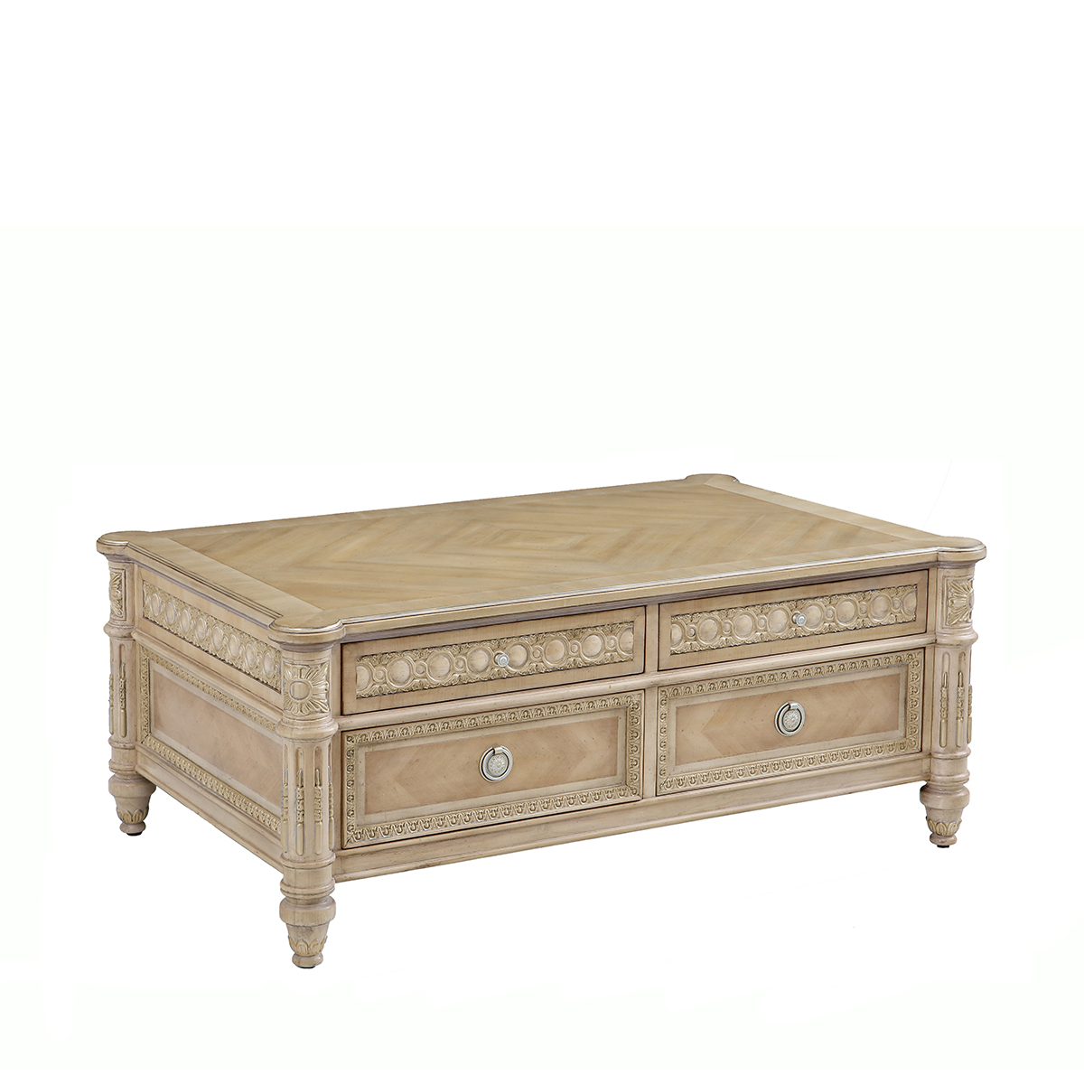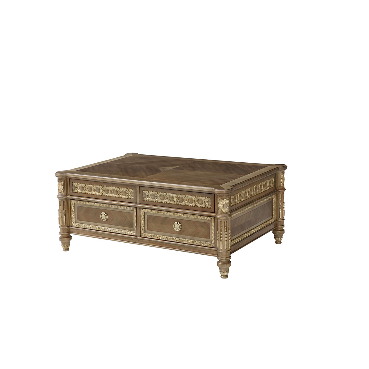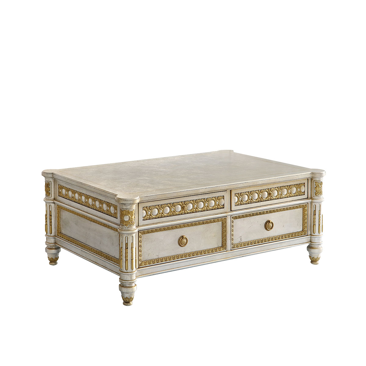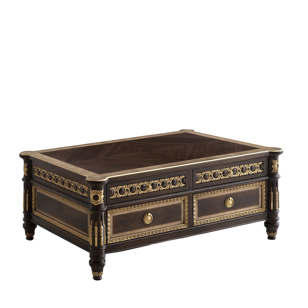 * 為表現(xiàn)法國路易時期的莊嚴(yán)和浪漫,以法國凡爾賽宮為設(shè)計元素。使用歌頌路易十四時期的太陽花雕刻,顯示其王權(quán)穩(wěn)固地位的錐形腿腳設(shè)計;配以鉆石圖案木皮貼面和貼金工藝,完美演繹了法式宮廷家具的奢華尊貴。