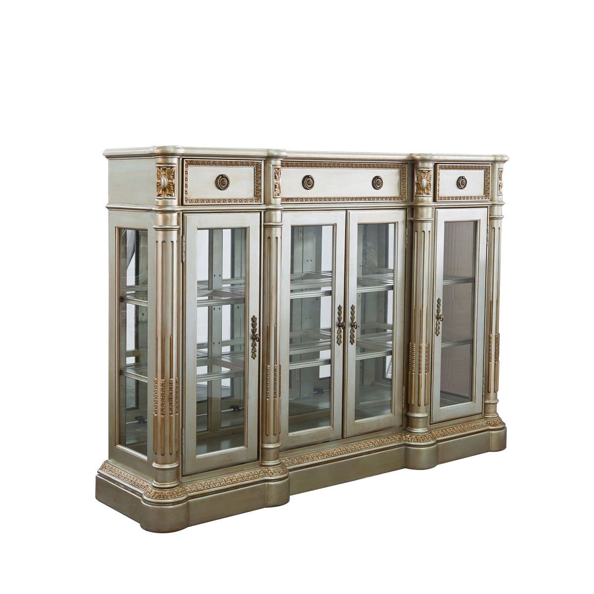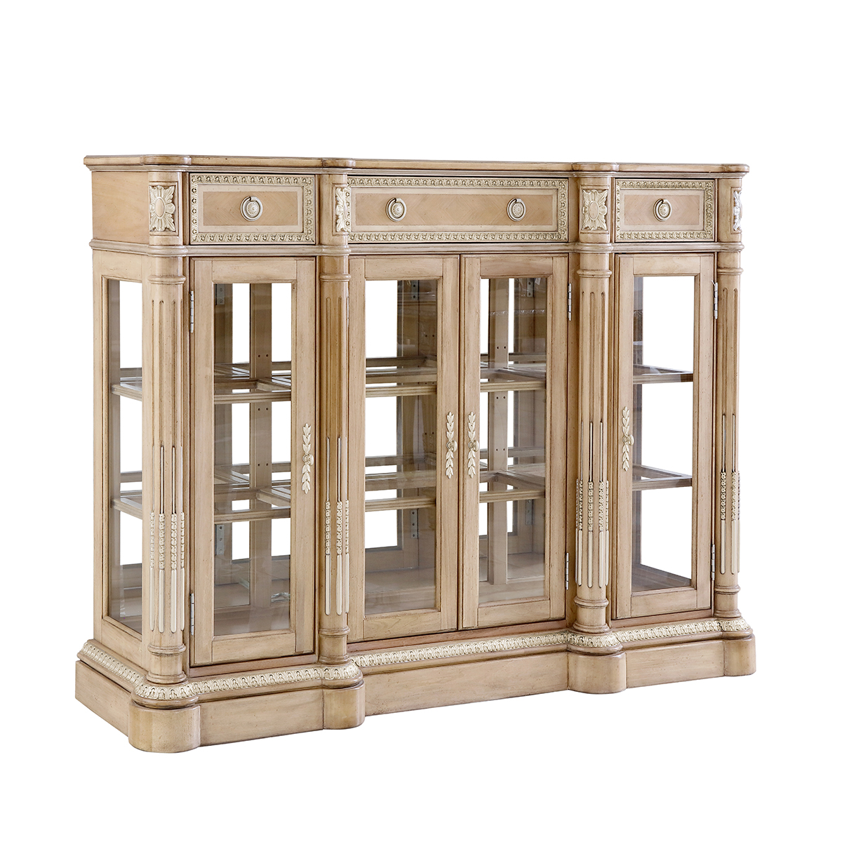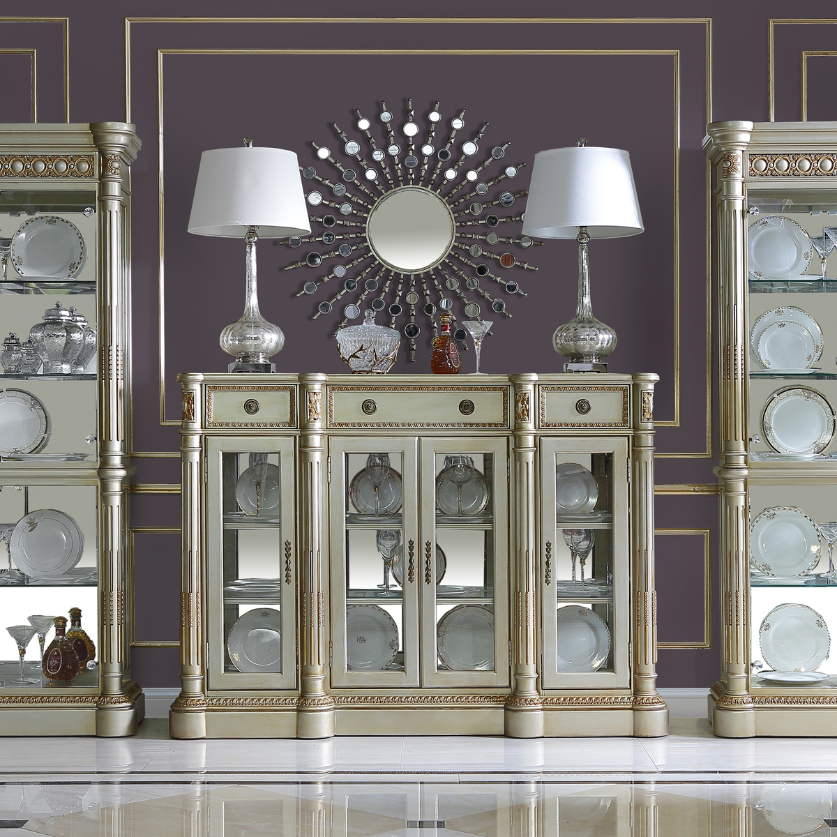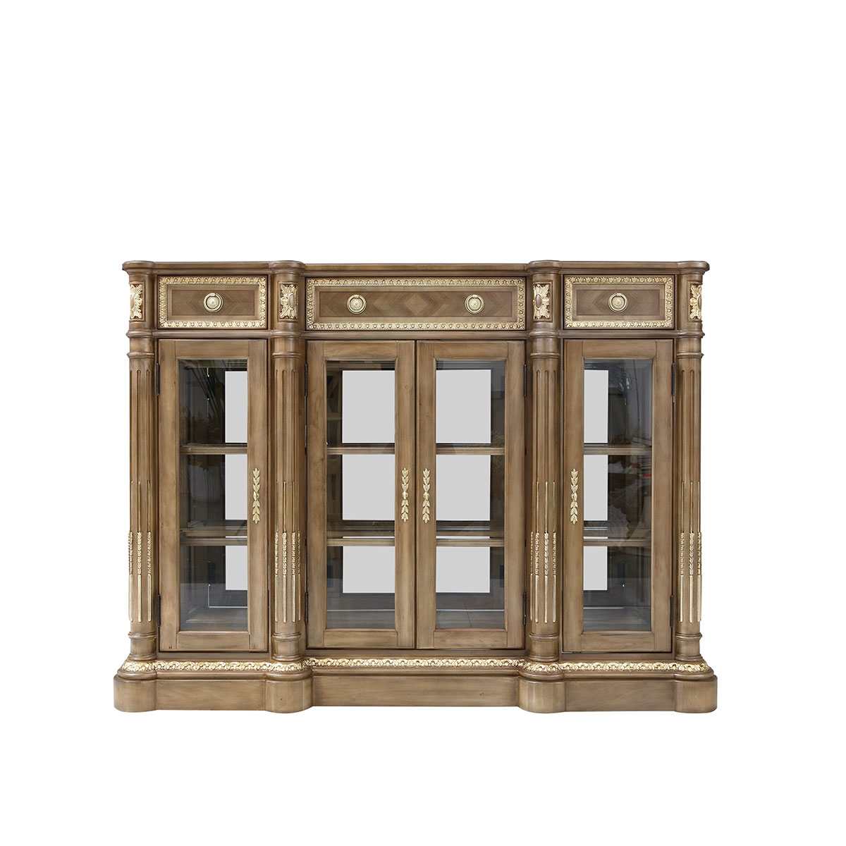 * 以法國路易十六時(shí)期的古董家具為設(shè)計(jì)基礎(chǔ),采用同時(shí)期的建筑柱元素和耀眼奢華的網(wǎng)眼圖案、金箔貼飾,使其充滿了法式宮廷的優(yōu)雅與華麗,充分詮釋了18世紀(jì)法式家具融合建筑與家具設(shè)計(jì)的藝術(shù)特點(diǎn)。