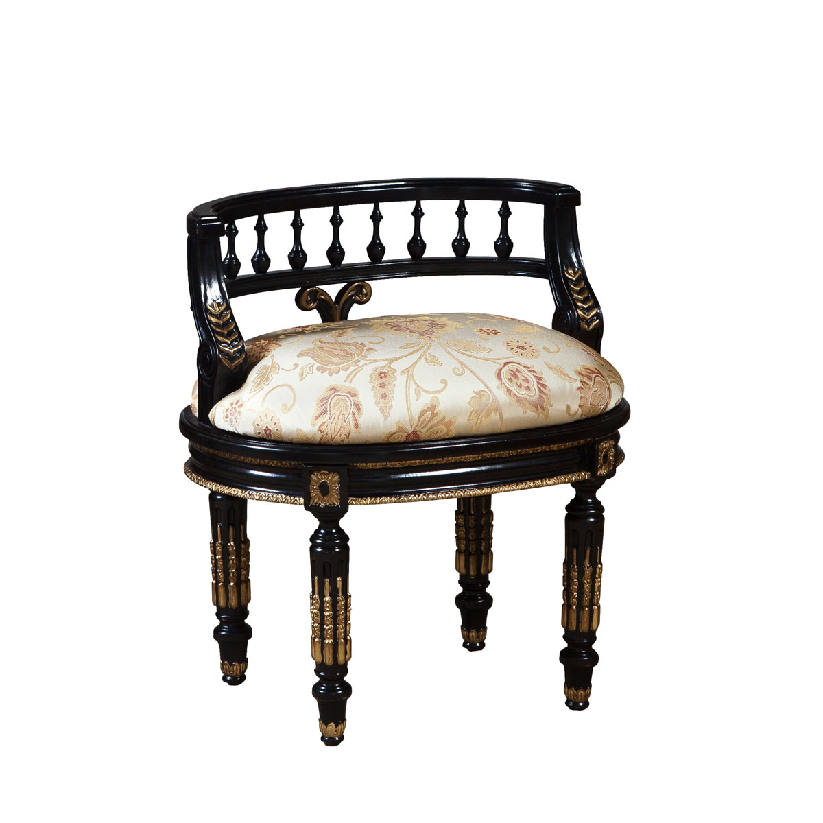 * 為表現(xiàn)法國路易時期的莊嚴(yán)和浪漫,以法國凡爾賽宮為設(shè)計元素。使用歌頌路易十四時期的太陽花雕刻,顯示其王權(quán)穩(wěn)固地位的錐形腿腳設(shè)計,配以建筑柱雕刻、獨(dú)特的欄桿式造型與黑底金漆配搭,完美演繹了法式宮廷家具的奢華尊貴。