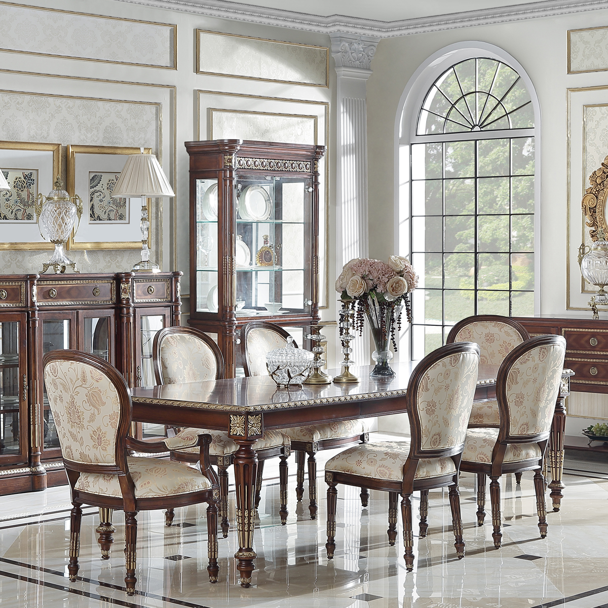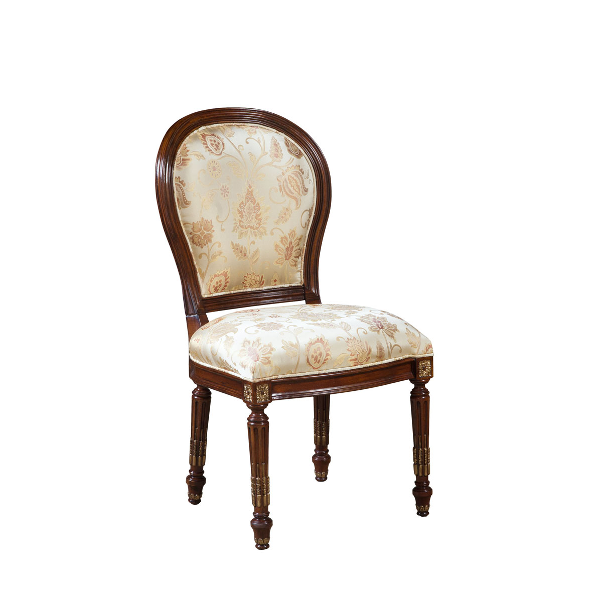 * 參考路易十六時期的古董造型設計,使用小提琴構造椅背和路易十六時期的建筑柱雕刻柱,配以精致的手工雕刻細節和涂金工藝、舒適的布藝面料和厚實柔軟的填充物,是豪華系列凡爾賽玫瑰法式單椅的特色。