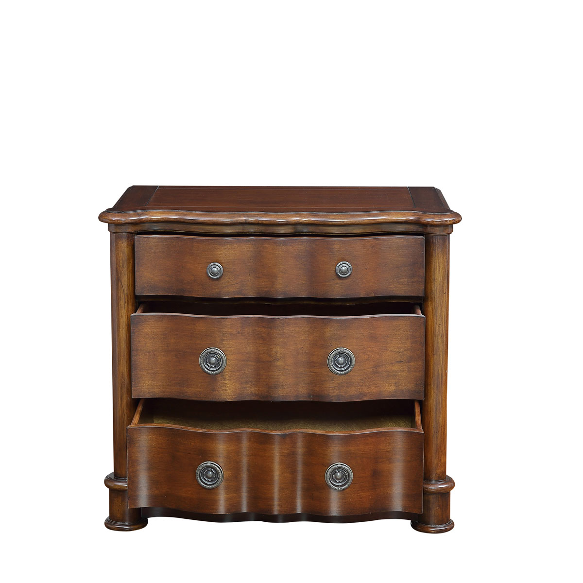 * 獨(dú)特的英式休閑風(fēng)格仿實木設(shè)計,是以英國木橋小鎮(zhèn)的鄉(xiāng)村風(fēng)味為設(shè)計元素,旨在傳遞一種舒適愜意、回歸自然的生活方式,配上優(yōu)美的曲線形斗面設(shè)計和古銅色球形把手,是木橋小鎮(zhèn)英式三斗柜的特色。