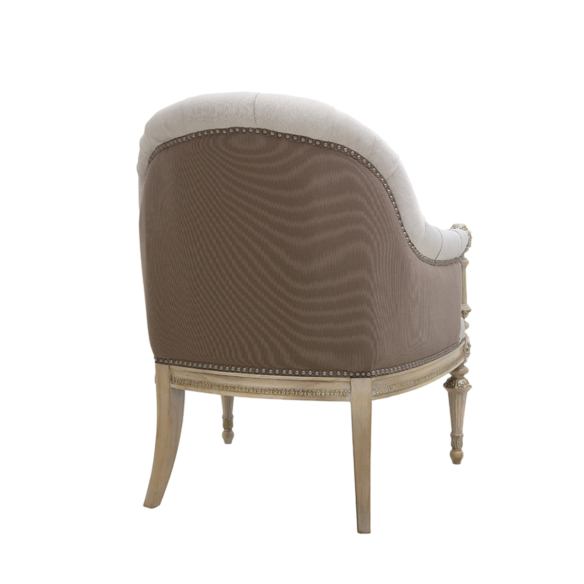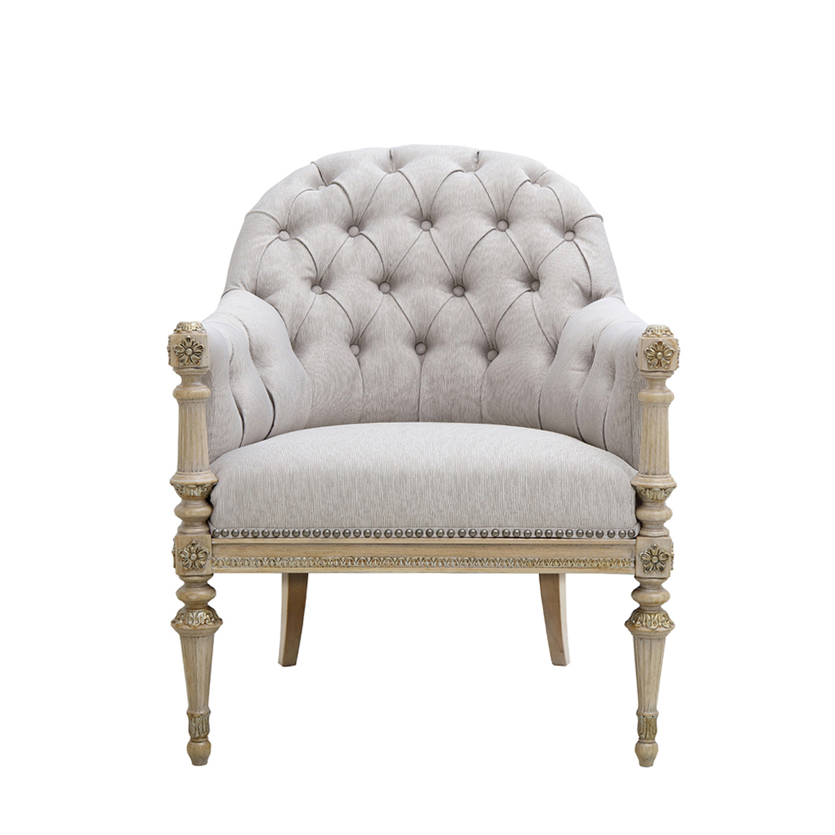 * 細致的拉扣工藝; * 椅背前后方及坐墊包有豐厚的填充物; * 底部裝有可調腳釘;