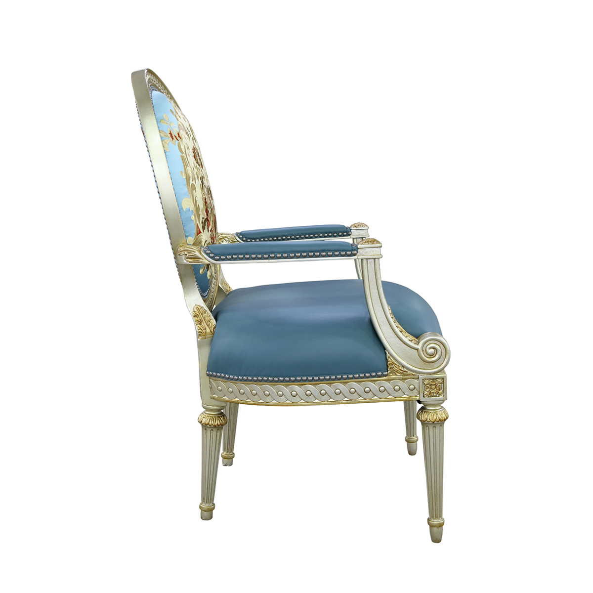 * 精細的手工雕刻配上仿金箔工藝結合十八道油漆工藝 * 坐墊和靠背包有豐厚的填充物; * 可拆裝的軟包座墊, * 提供多種面料可供選擇