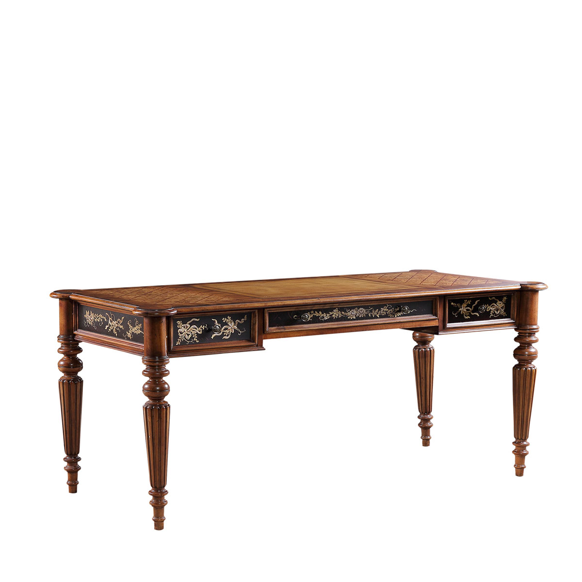 * 以18世紀(jì)英吉利——“日不落帝國(guó)”為設(shè)計(jì)主題,將東西方的多種藝術(shù)元素結(jié)合在一起。精致的木皮貼面,展現(xiàn)了高檔木材的天然紋理,帶出獨(dú)特的立體感;黑底金漆的山水手繪,頗具東方情調(diào)。配上Sheraton(謝拉頓風(fēng)格)的錐形凹槽柱和層板設(shè)計(jì),是經(jīng)典系列英吉利經(jīng)典英式長(zhǎng)方咖啡桌的特色。