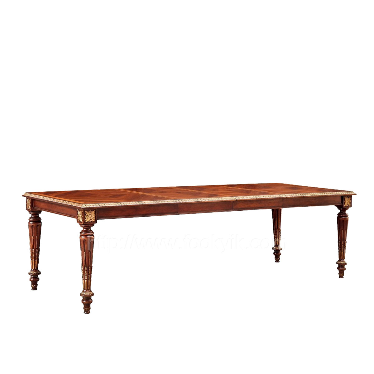 * 為表現法國路易時期的莊嚴和浪漫,以法國凡爾賽宮為設計元素。使用歌頌路易十四時期的太陽花雕刻,顯示其王權穩固地位的錐形腿腳設計;配以鉆石圖案木皮貼面、可調節的伸板設計和貼金工藝,完美演繹了法式宮廷家具的奢華尊貴。