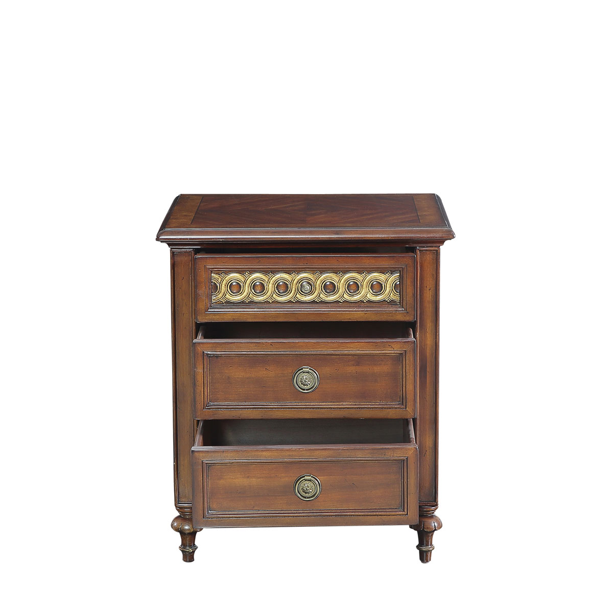 * 為表現法國路易時期的莊嚴和浪漫,以法國凡爾賽宮為設計元素。使用歌頌路易十四時期的太陽花連環雕刻,配以優雅的花形腿腳設計、古銅色的球形把手和貼金工藝,完美演繹了法式宮廷家具的奢華尊貴。