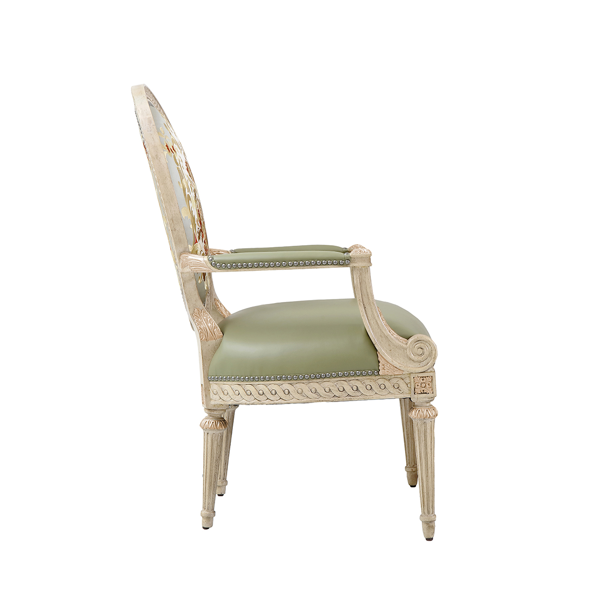 * 精細的手工雕刻配上仿金箔工藝結合十八道油漆工藝 * 坐墊和靠背包有豐厚的填充物; * 可拆裝的軟包座墊, * 提供多種面料可供選擇