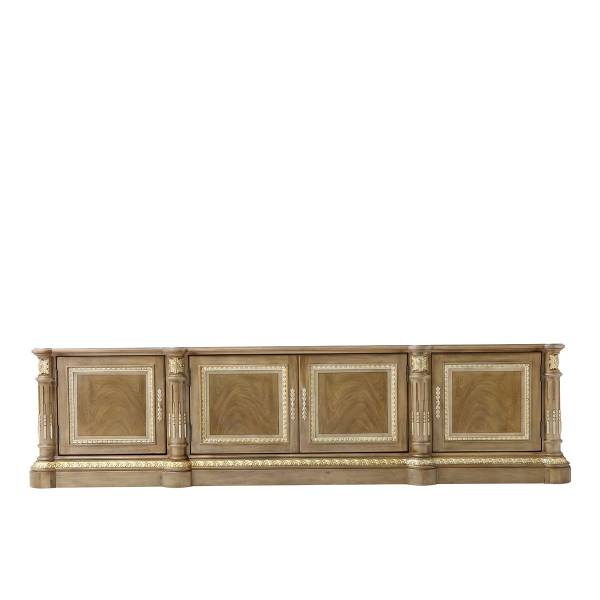 * 手工雕刻的工藝細節,結實的連接技術; * 中間兩個儲物抽斗配有CD/DVD隔板,可CD/DVD更好的存放,其底部采用經典硬木實木滑軌設計; * 兩扇門內各有1塊可調層板;上部為開空設計,可在內放播放器等電子器材; * 腳底部裝有可調腳釘;
