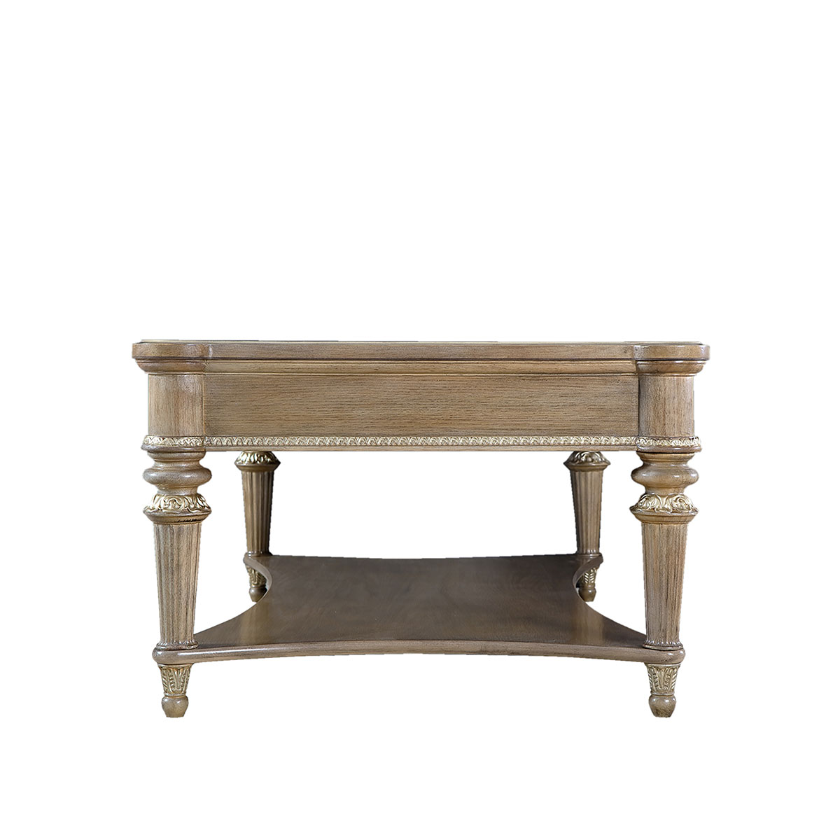以直線為美的的羅馬柱元素打造而成,桌面的圖案使用名貴的白栓樹瘤,由工藝嫻熟的匠師純手工拼貼而成,紋理較亂,木紋呈自然凌亂之美,木質細膩,如蝙蝠翅膀的底座寓意“福”到,寓意深遠。