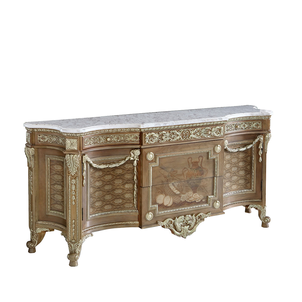 以法國(guó)著名工匠 Jean Henri Riesener 為 Louis VXI (路易十六)設(shè)計(jì)的新古典風(fēng)格古董櫃為靈感,四平八穩(wěn)的方形設(shè)計(jì)配以細(xì)膩的雕刻與實(shí)木簿片鑲嵌,呈現(xiàn)出法國(guó)宮廷的浪漫。