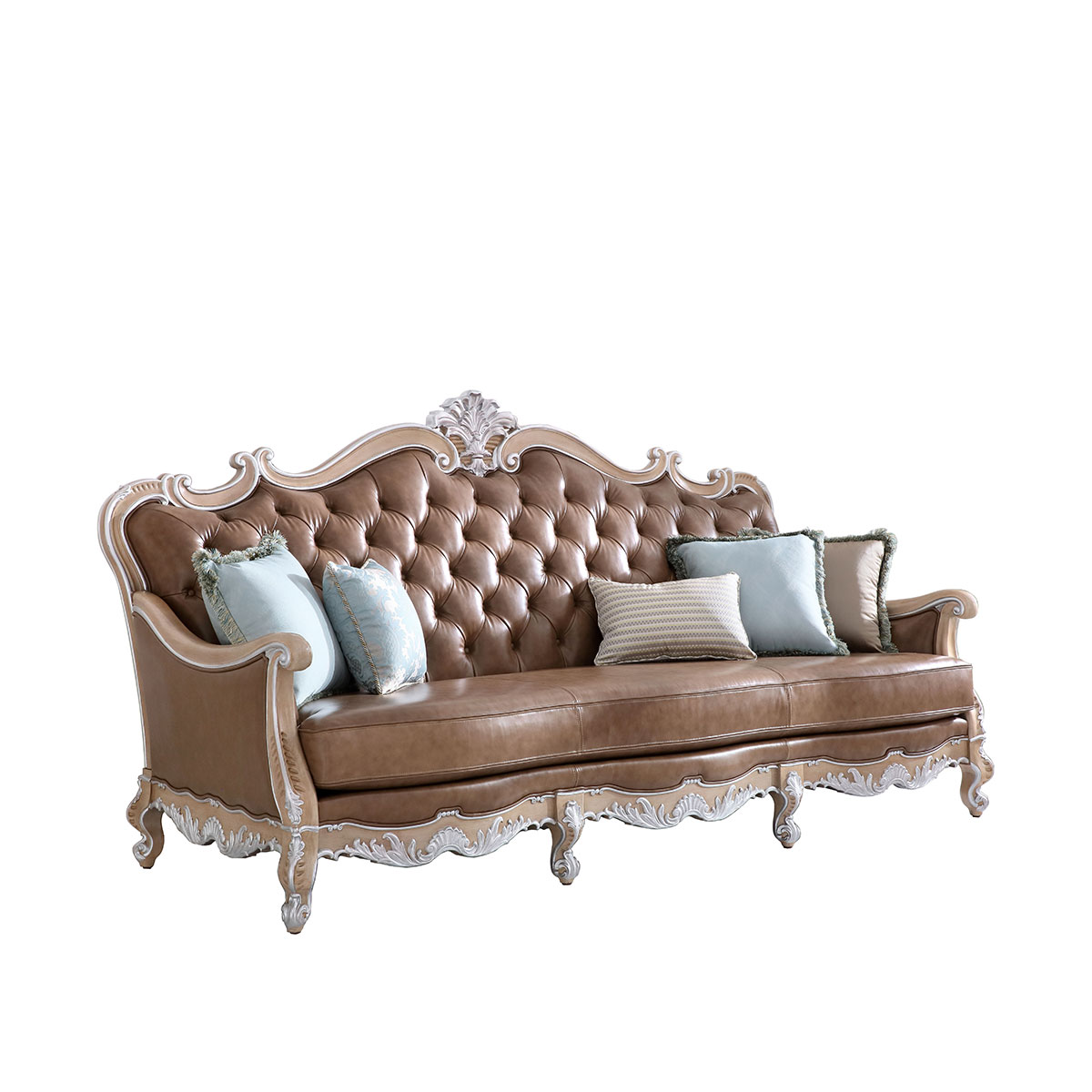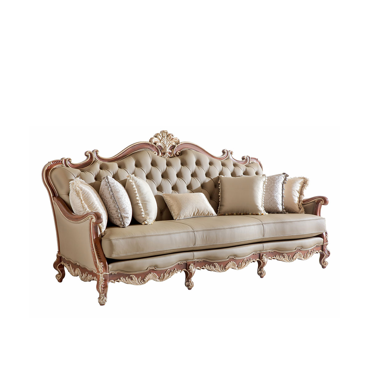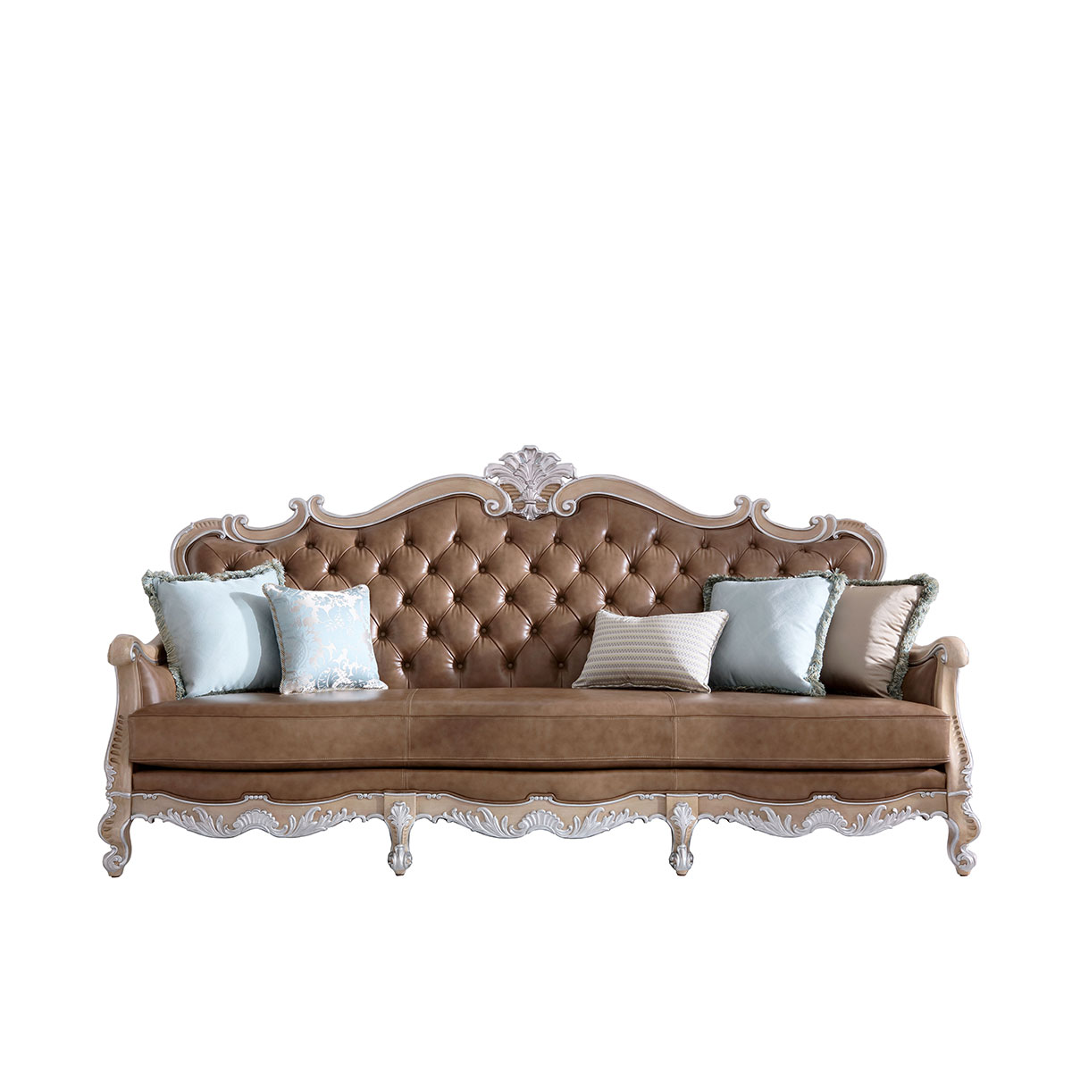 * 本款沙發(fā)可選擇四片拆裝(底座、左扶手、右扶手、后背)* 坐墊和靠背包有豐厚的填充物;* 標(biāo)配抱枕:550*550 6個(gè) 550*350 1個(gè) * 提供多種面料可供選擇;