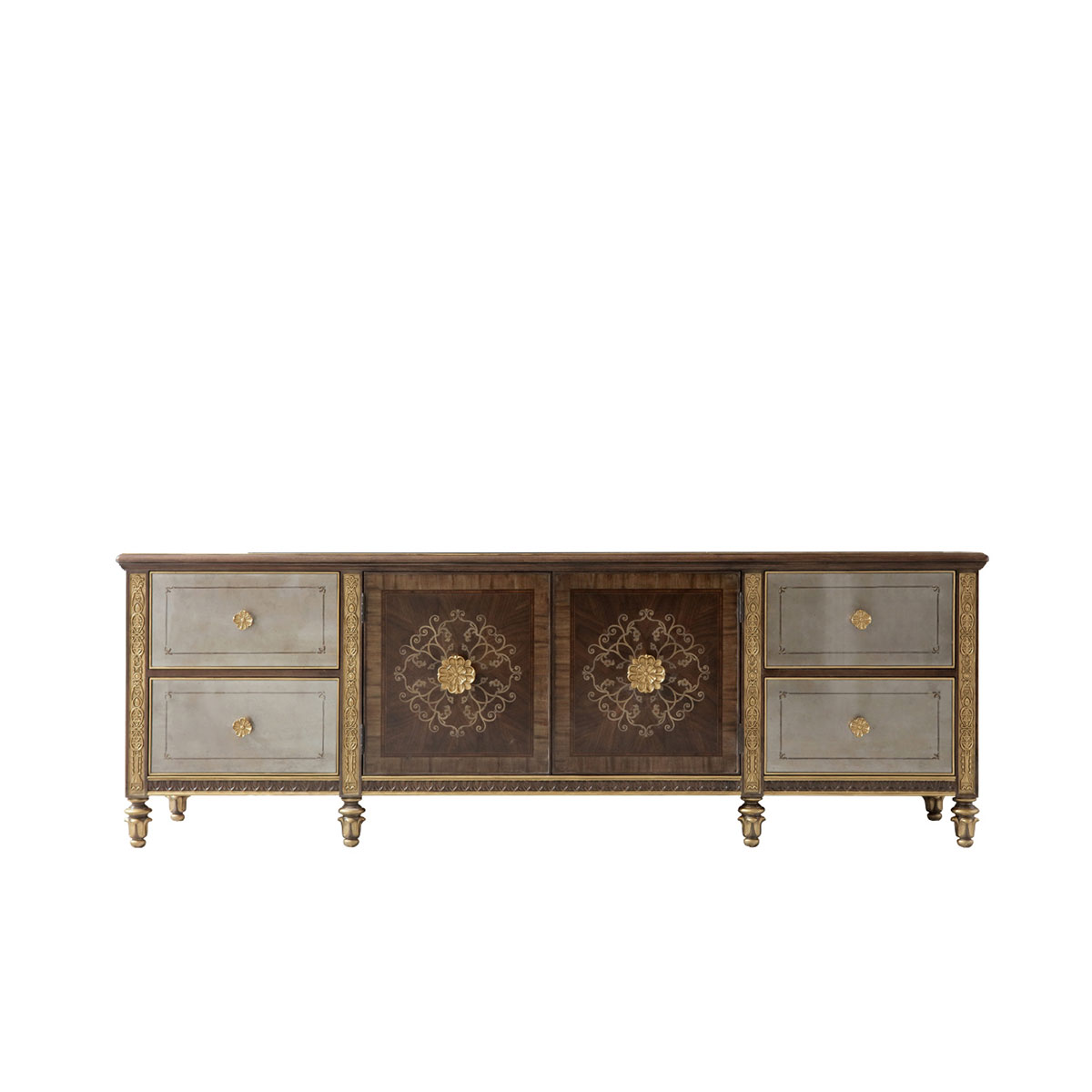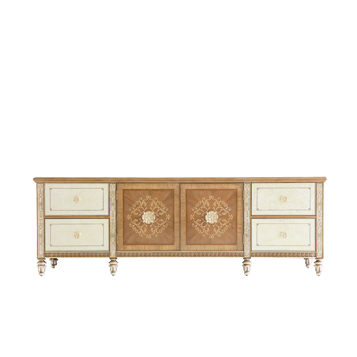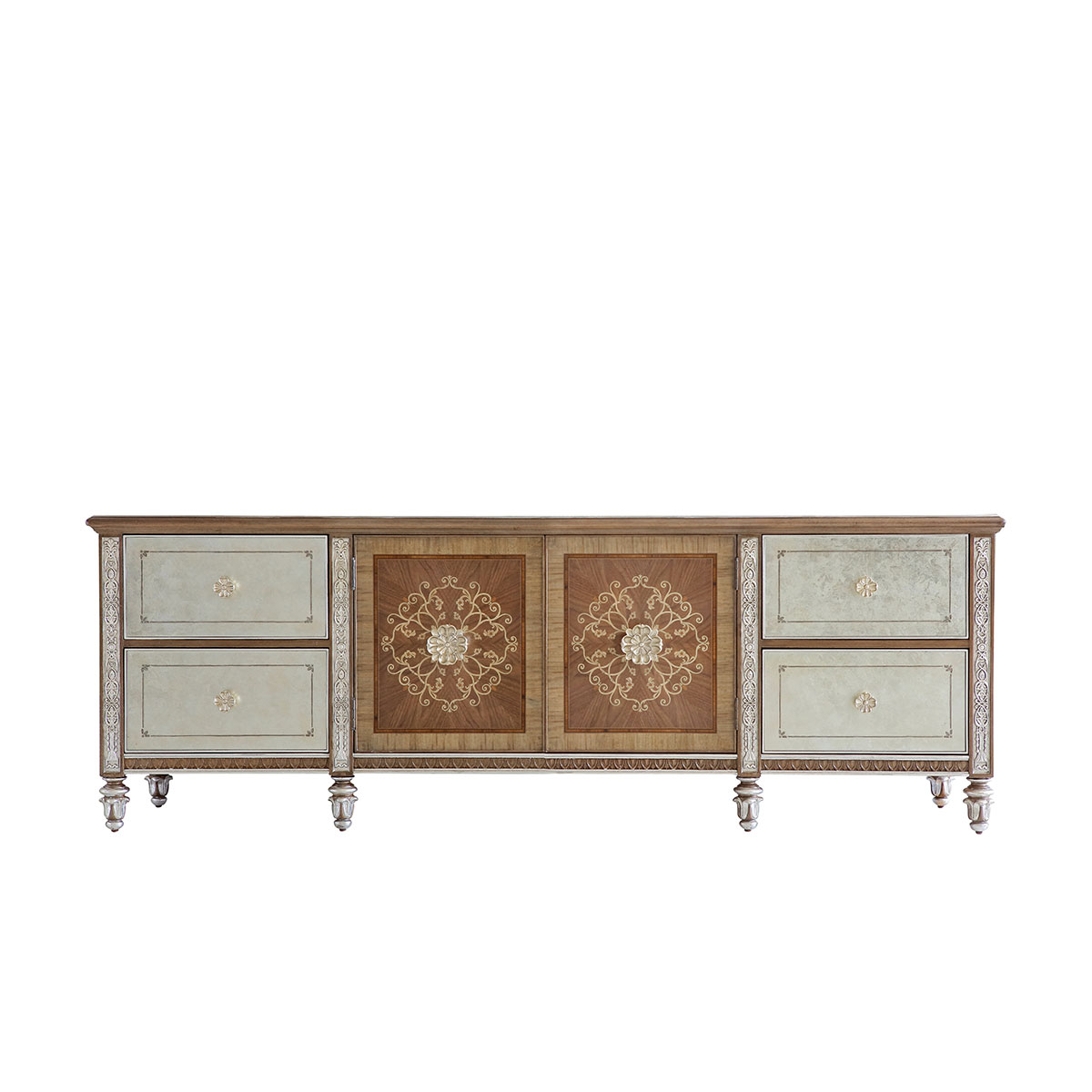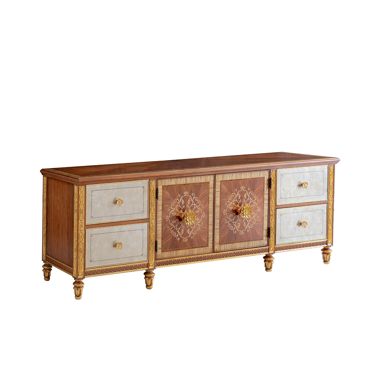 橡膠木+環(huán)保人造板+黑胡桃+艷陽花+櫻桃木等木皮貼面+藝術(shù)玻璃