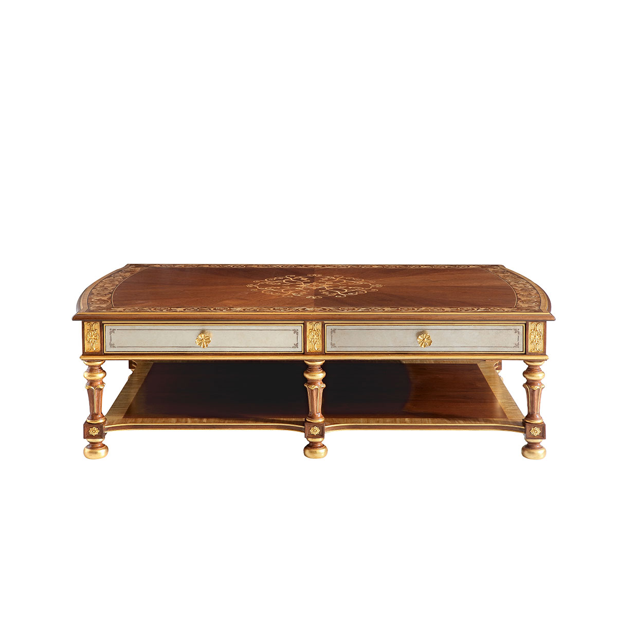 橡膠木+環(huán)保人造板+黑胡桃+艷陽花+櫻桃木等木皮貼面+彩繪玻璃