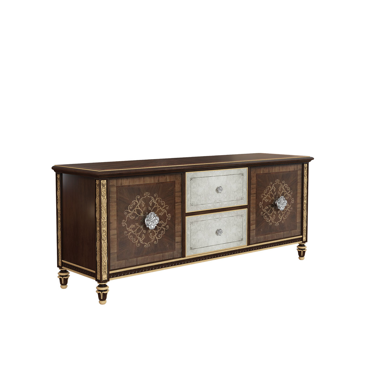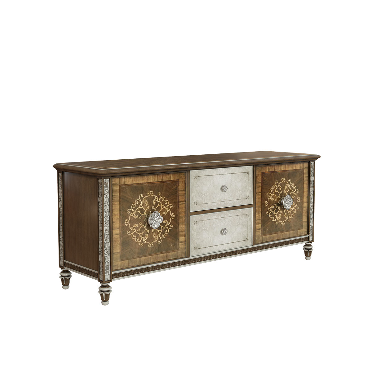 橡膠木+環(huán)保人造板+黑胡桃+艷陽(yáng)花+櫻桃木等木皮貼面+藝術(shù)玻璃