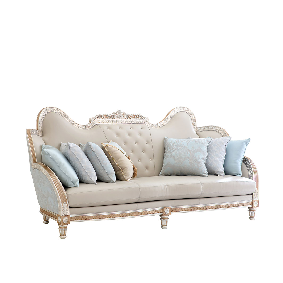 * 本款沙發(fā)可選擇四片拆裝(底座、左扶手、右扶手、后背)* 坐墊和靠背包有豐厚的填充物;* 標配抱枕:500*500 6個 430*430 1個;* 提供多種面料可供選擇;