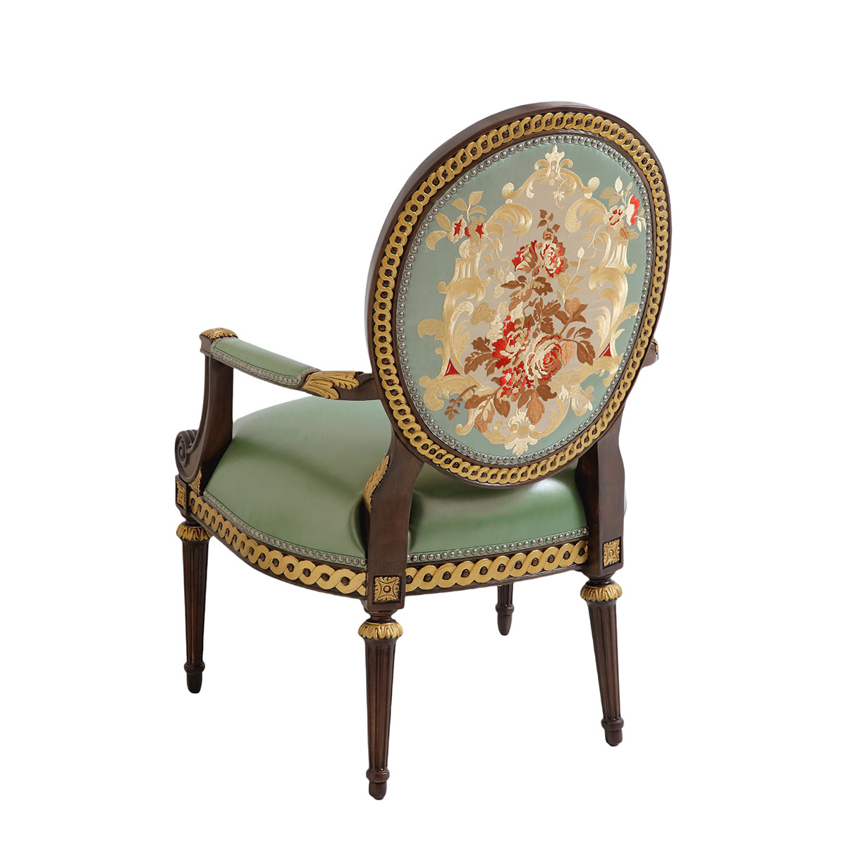 * 精細的手工雕刻配上仿金箔工藝結合十八道油漆工藝 * 坐墊和靠背包有豐厚的填充物; * 可拆裝的軟包座墊, * 提供多種面料可供選擇