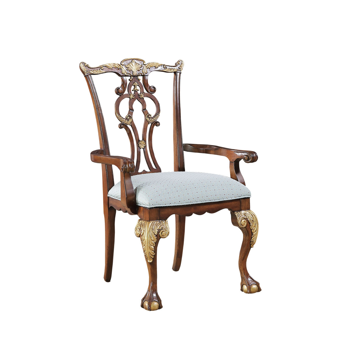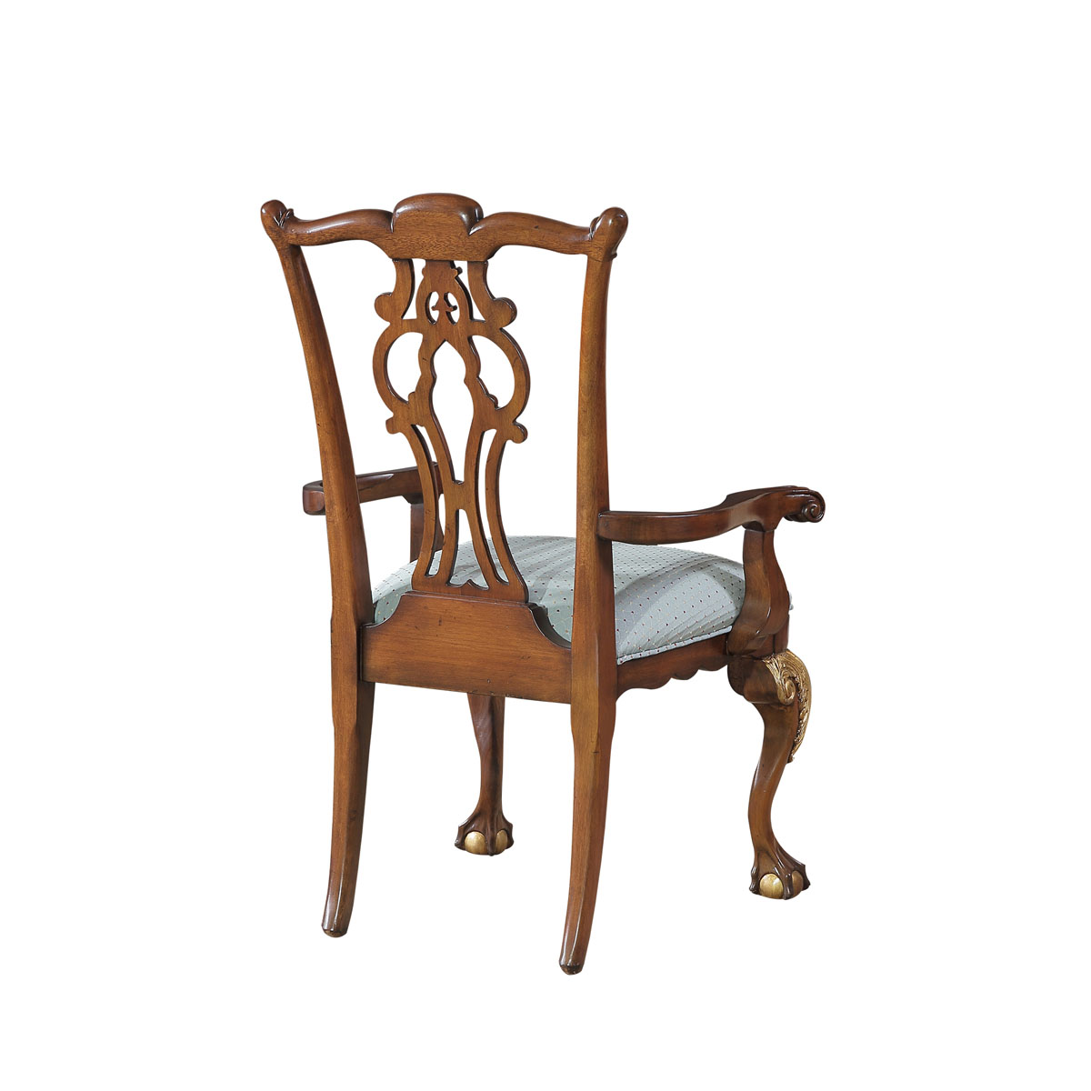 * 為表現(xiàn)英國皇室的華麗和莊嚴,以英國溫莎堡為設計元素。從青花瓷花瓶得到靈感的Chippendale(齊彭代爾式)鏤空椅背和與卷葉雕刻結(jié)合的獸抓球彎腿設計,表達出王室的尊貴品位。配上精致的手工雕刻細節(jié)和貼金箔工藝,是豪華系列溫莎堡英式扶手椅的特色。