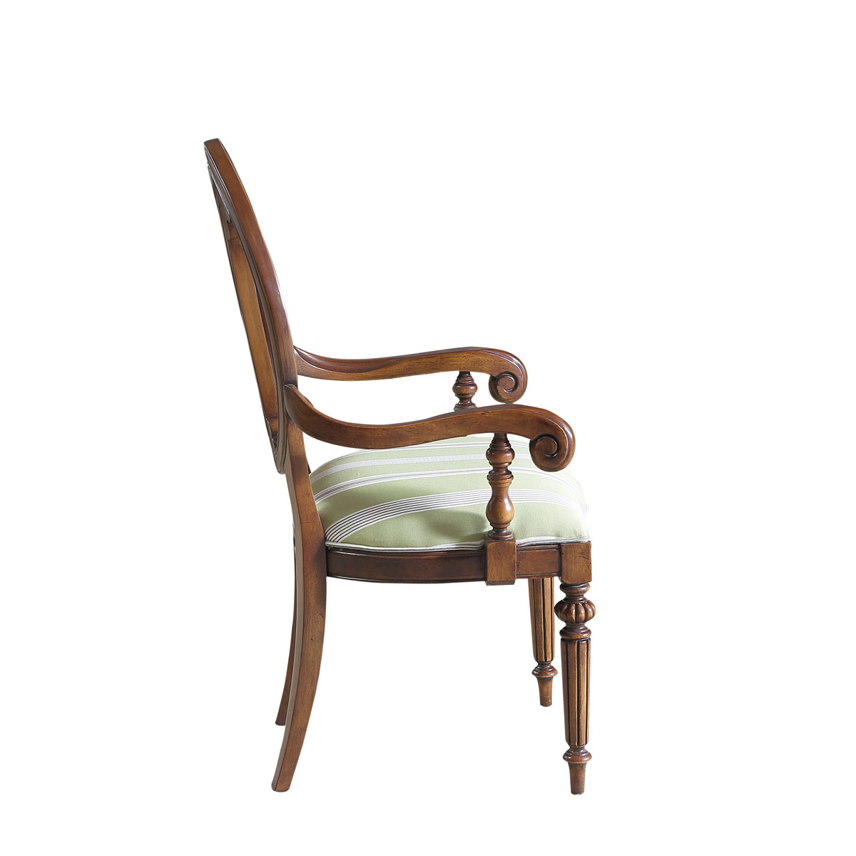 * 獨特的圓形鏤空椅背設計,是以英國木橋小鎮的鄉村風味為設計元素,配上南瓜柱造型和包有豐厚填充物的坐墊,是木橋小鎮英式扶手椅的特色。