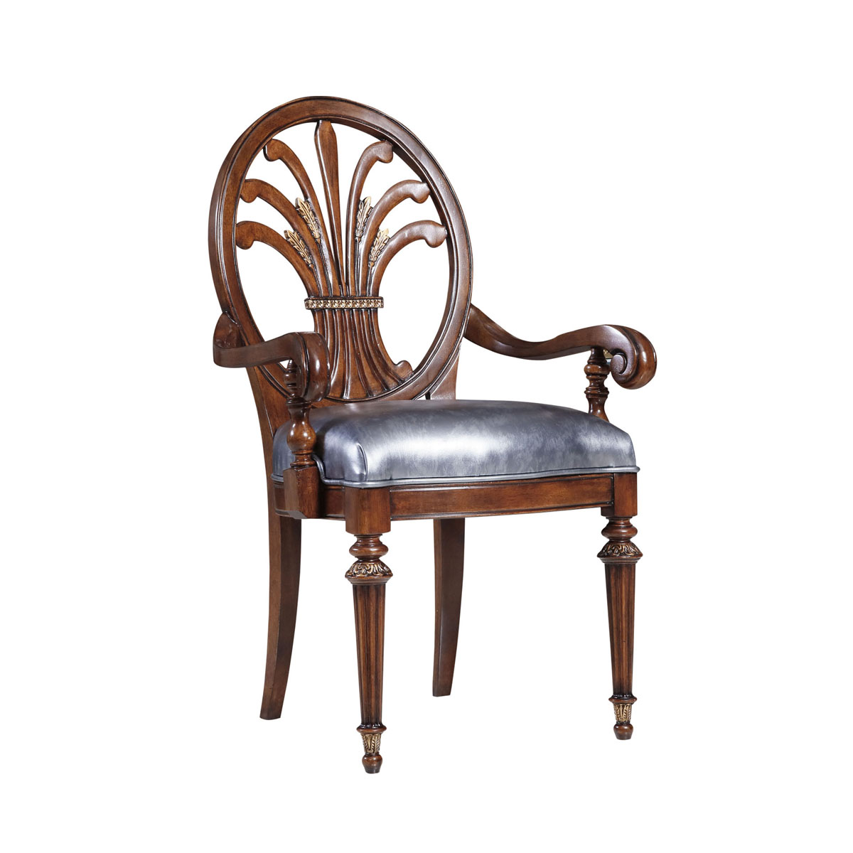 * 以意大利的宮廷家具和羅馬的古建筑為元素,使用錐形的腿腳設計、精致的手工雕刻細節和描金工藝的結合,顯示王權的穩固地位;配以對稱的棕櫚葉和麥穗雕刻裝飾椅背、配上厚實柔軟的填充物和皮藝是豪華系列翡冷翠 意式扶手椅的特色。