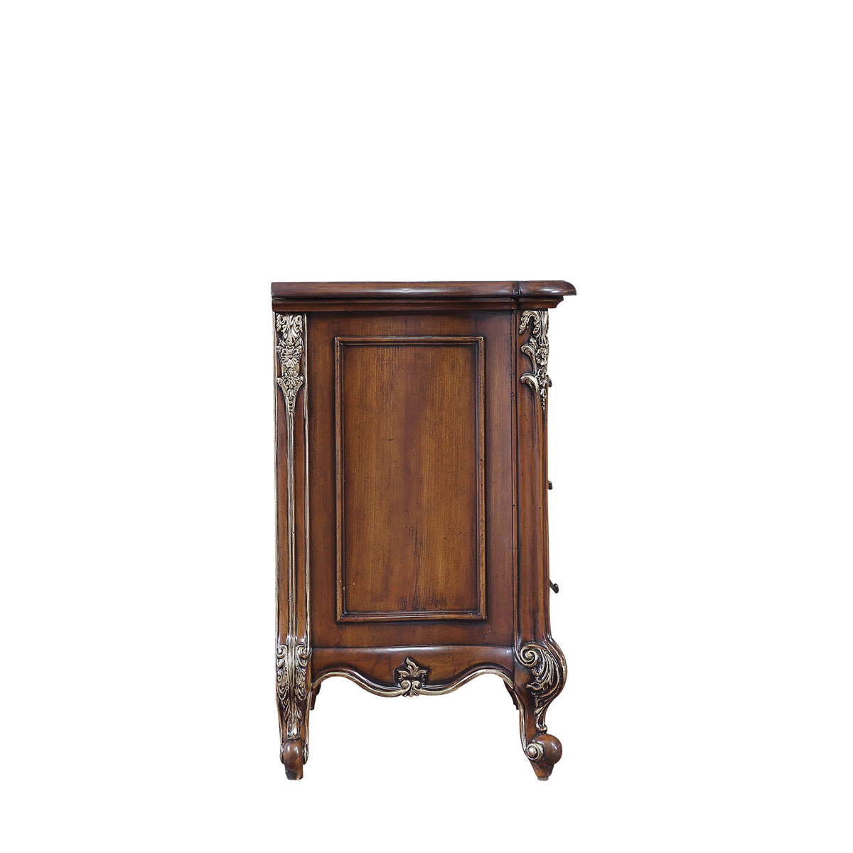 * 手工雕刻的花圃、藤蔓、阿坎瑟斯卷葉圖案和彎腳設計; * 結實的連接技術; * 三個儲物抽斗,并在其底部采用經典硬木實木滑軌設計; * 腳底部裝有可調腳釘;
