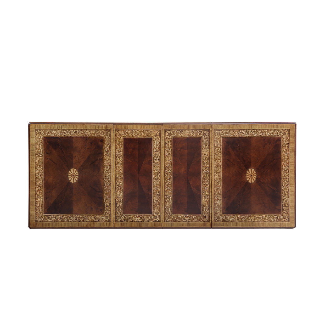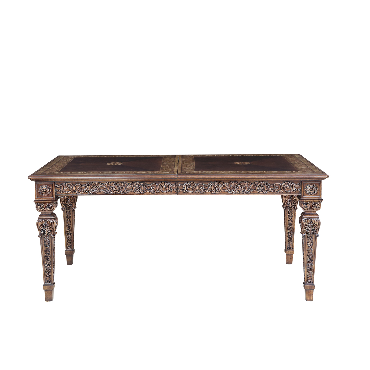 * 以現位于美國白宮中象征友誼和權力的堅毅桌(英語:Resolute desk)為設計意念, 以實木拼貼和雕刻工藝,將具有紀念意義的歷史時刻融入其中,實用性的功能設計更是把藝術和生活完美結合, 是宮廷系列華盛頓美式餐桌的特色。