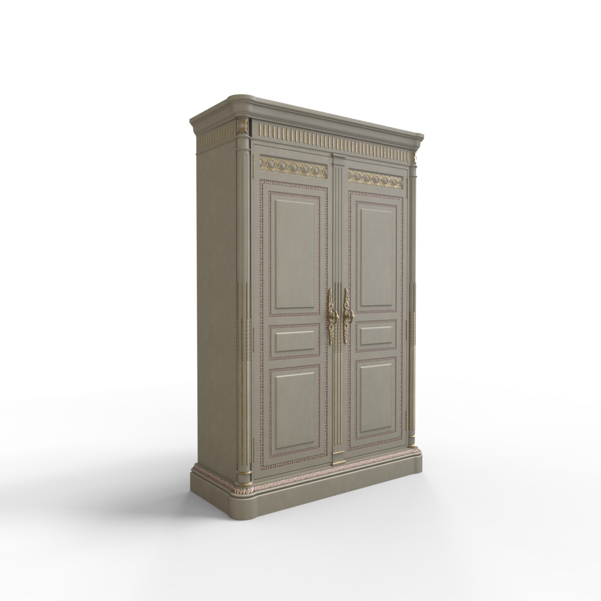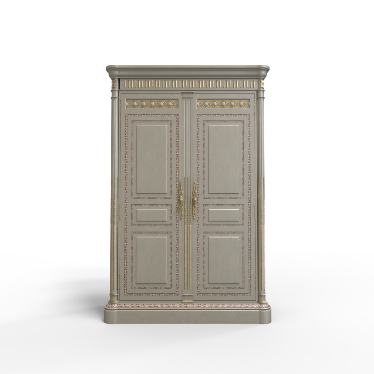 * 為表現(xiàn)法國路易時期的莊嚴(yán)和浪漫,以法國凡爾賽宮為設(shè)計元素。使用歌頌路易十四時期的太陽花連環(huán)雕刻,從建筑中汲取的雕刻柱元素,配以精美的木皮貼面與貼金工藝,完美演繹了法式宮廷家具的奢華尊貴。