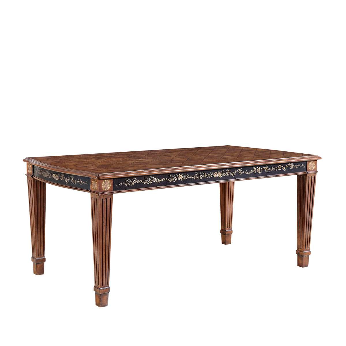 * 采用了喬治王朝后期流行的上粗下細(xì)帶槽紋方形腿,結(jié)合略帶弧度的線條與雅致的木皮貼面,將英式家具在新古典時(shí)期的芳容身姿展露無(wú)遺。