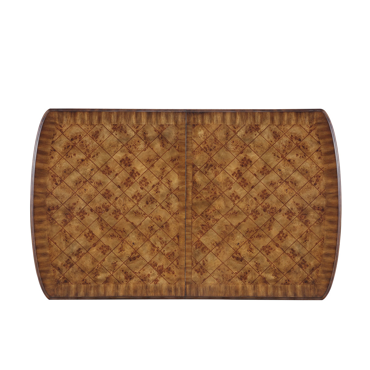 * 采用了喬治王朝后期流行的上粗下細帶槽紋方形腿,結合略帶弧度的線條與雅致的木皮貼面,將英式家具在新古典時期的芳容身姿展露無遺。