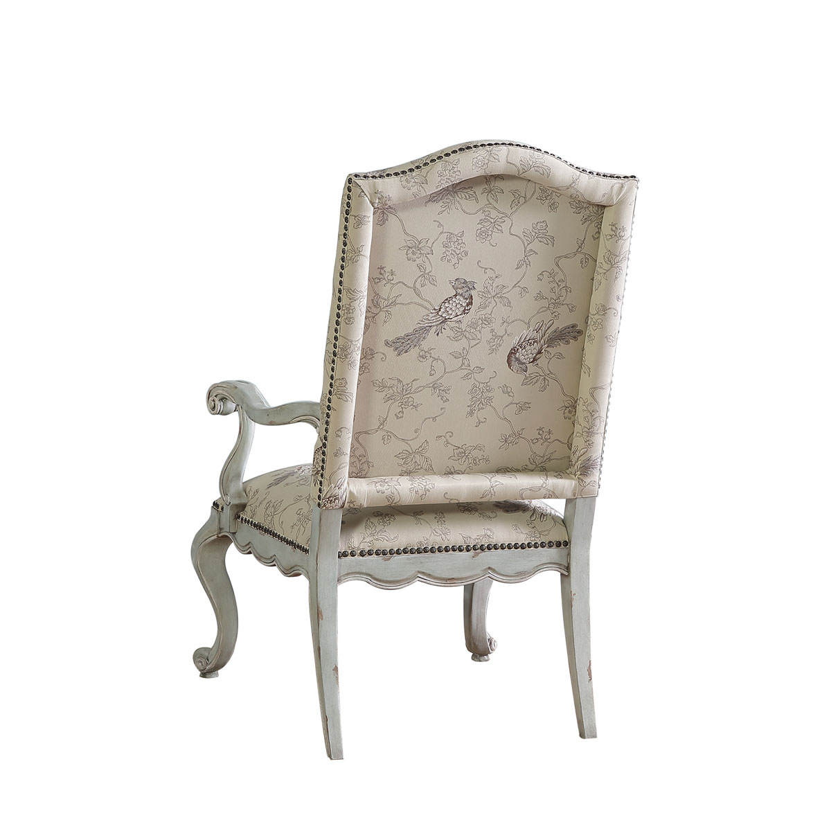* 一款集合法式元素包括Camelback Silhouette(駝峰輪廓)造型、旋渦形扶手和S形彎腳的高背休閑椅,并配上觸感舒適的布藝和包有豐厚的填充物坐墊和靠背;