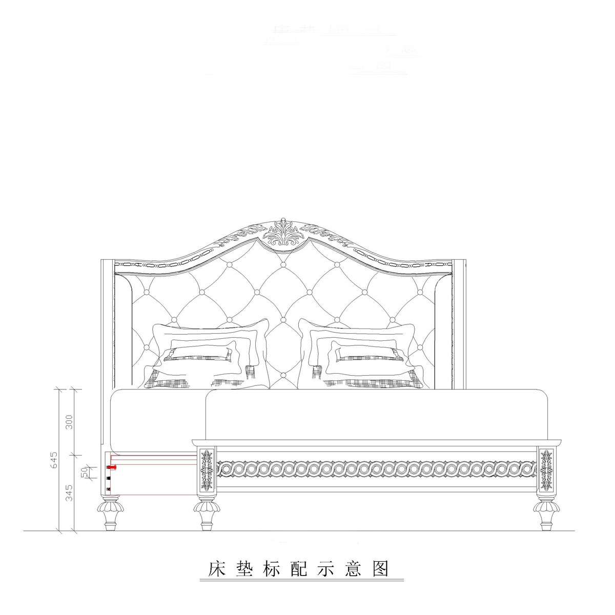 * 延伸的床架布滿手工實木雕刻的花環,卷葉和網眼圖案 * 4只花形雕刻腳 * 共3種尺寸選擇可適用多種戶型 * 中間使用優質夾板鋪平,延長床墊的使用年限 * 床頭板包有豐厚的填充物 * 床頭板可提供多種面料可供選擇;