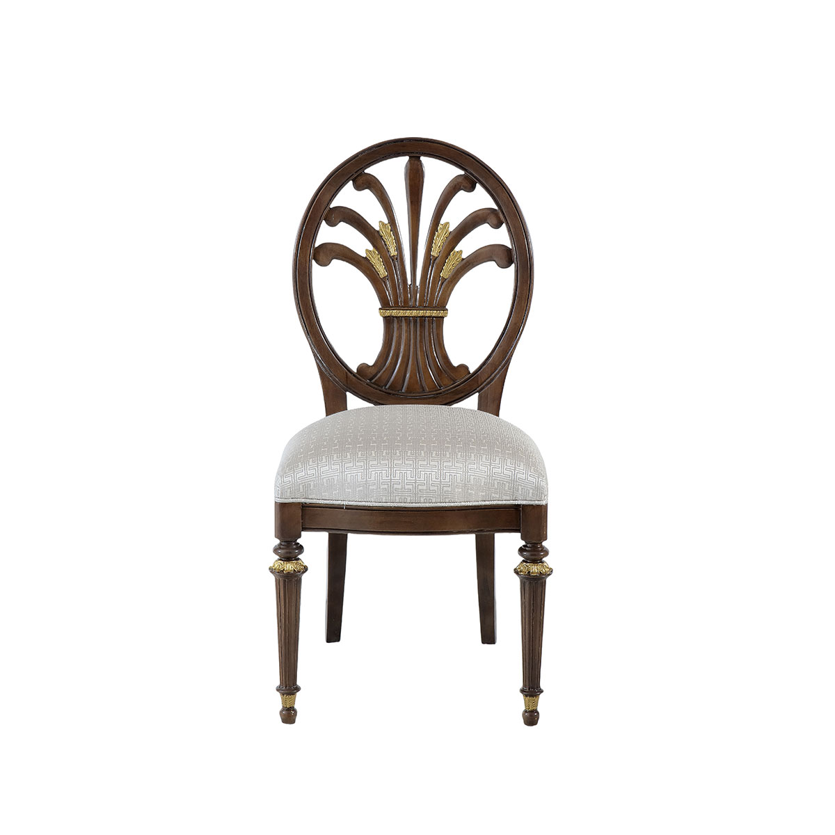 * 以意大利的宮廷家具和羅馬的古建筑為元素,使用錐形的腿腳設(shè)計(jì)、精致的手工雕刻細(xì)節(jié)和描金工藝結(jié)合,顯示王權(quán)的穩(wěn)固地位;配以對(duì)稱的棕櫚葉和麥穗雕刻裝飾椅背、色彩豐富的布藝面料和厚實(shí)柔軟的填充物是豪華系列翡冷翠 意式單椅的特色;