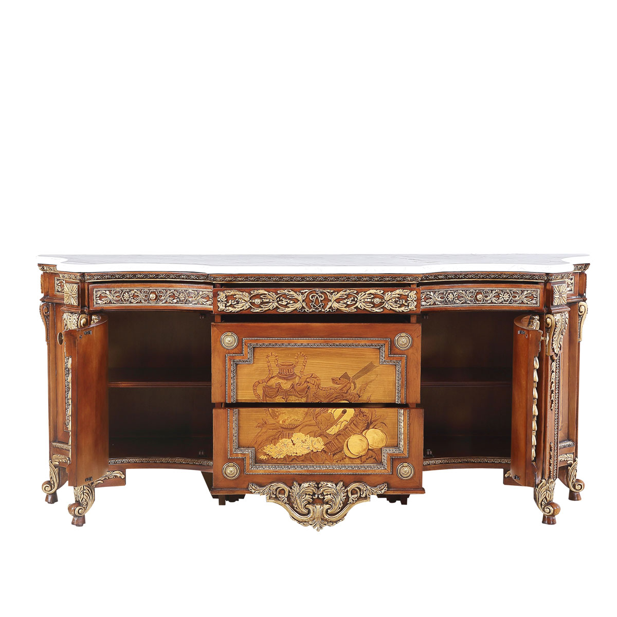 * 以法國著名工匠 Jean Henri Riesener 為 Louis VXI (路易十六)設計的新古典風格古董柜為靈感,四平八穩的方形設計配以細膩的雕刻與實木簿片鑲嵌,呈現出法國宮廷的浪漫。