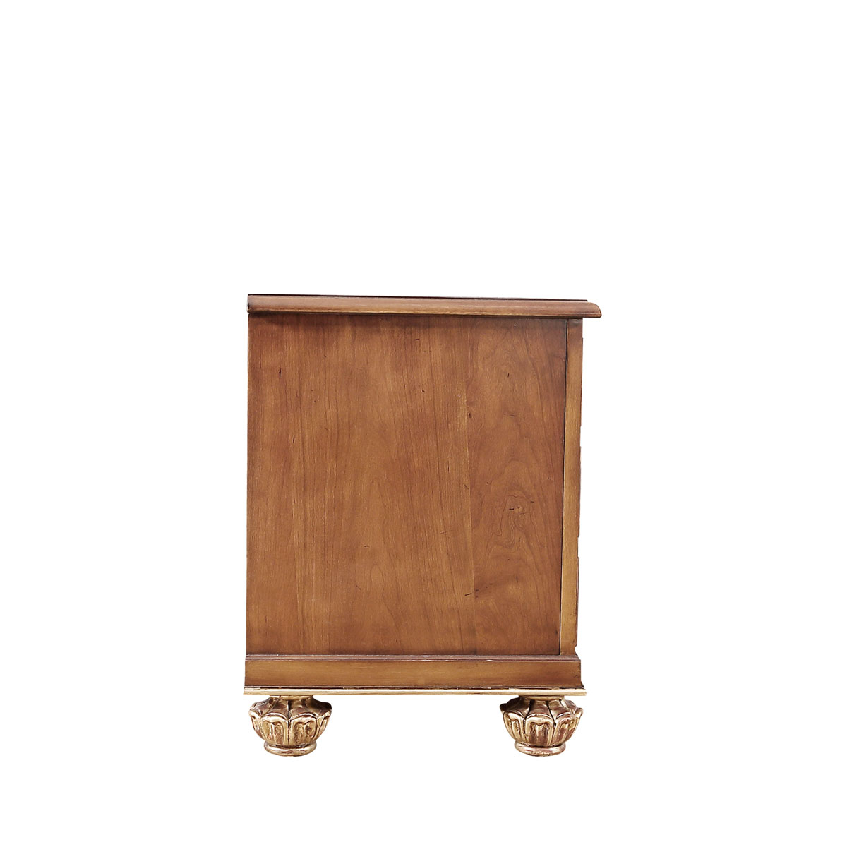 * 手工拼花藤蔓效果,用多種上等木皮拼制而成 * 三個(gè)儲(chǔ)物斗,底部采用經(jīng)典的硬木實(shí)木滑軌; * 腳底部裝有可調(diào)腳釘