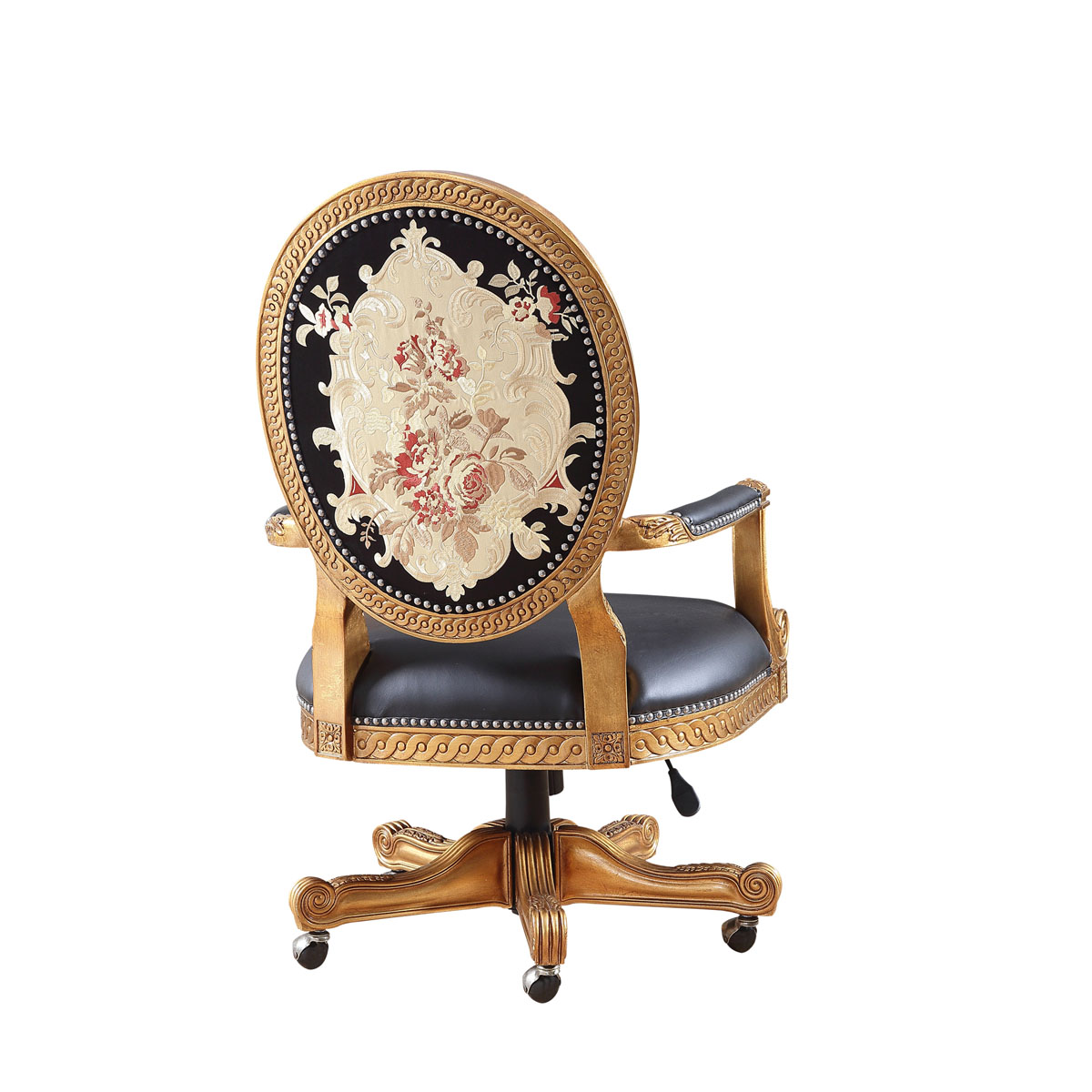 * 參考18世紀法國路易十六時期涂金扶手椅古董設計,并結合同時期的圓面背板設計。配上精致的連續雕刻和貼金鉑工藝、錐形腳設計、觸感舒適的布藝和包有豐厚的填充物坐墊和靠背。