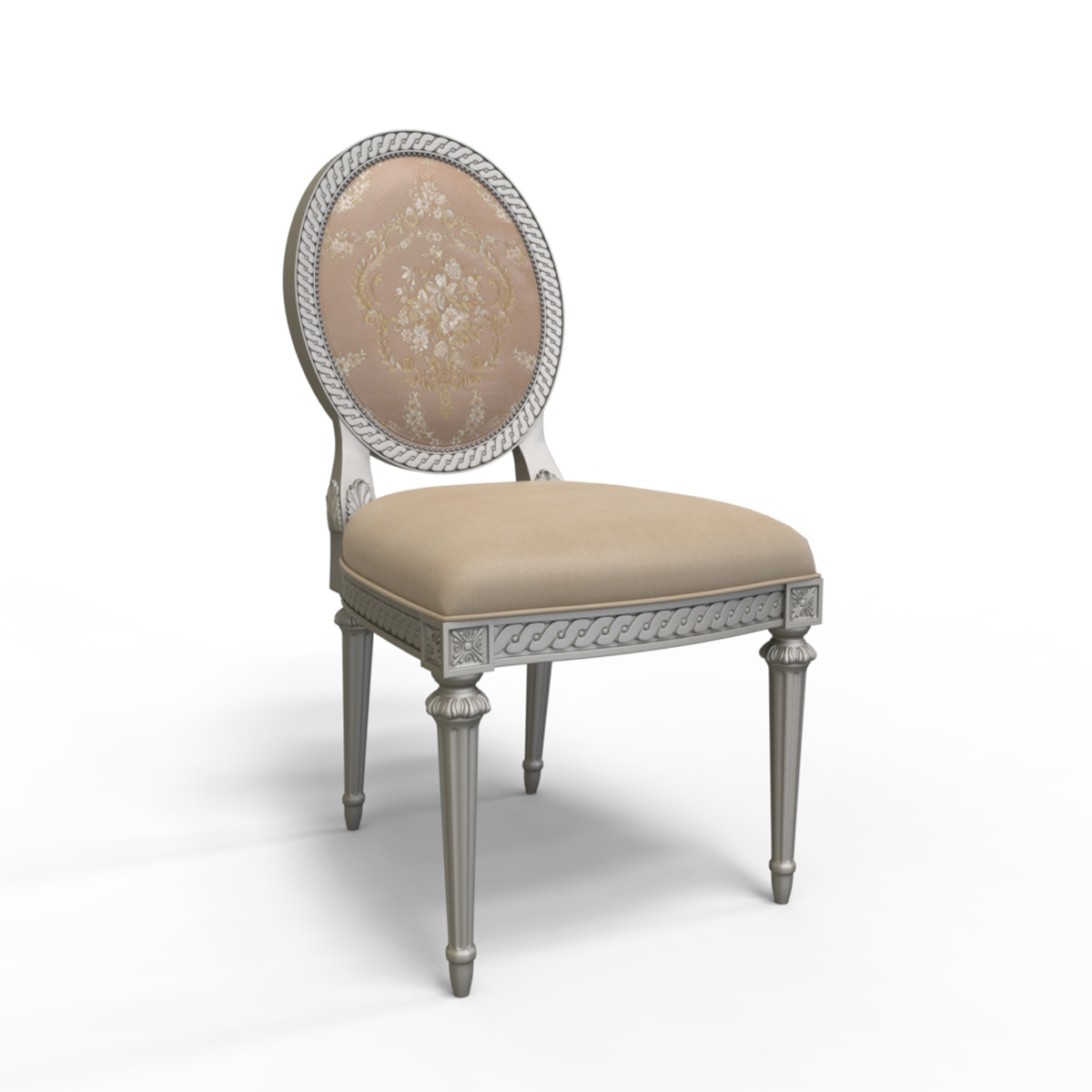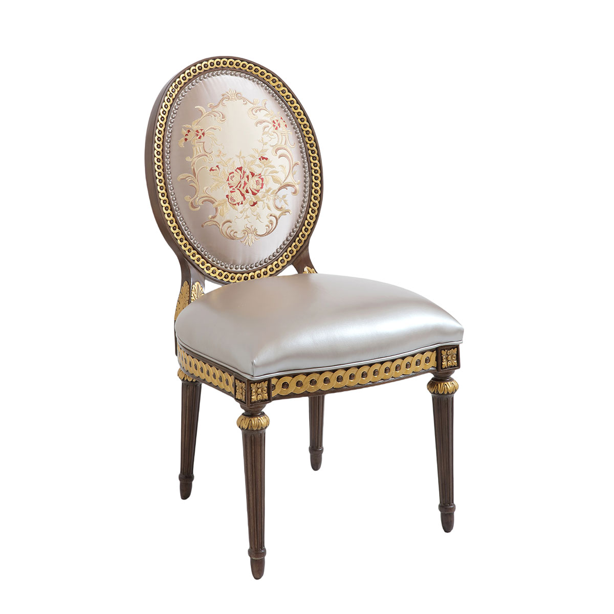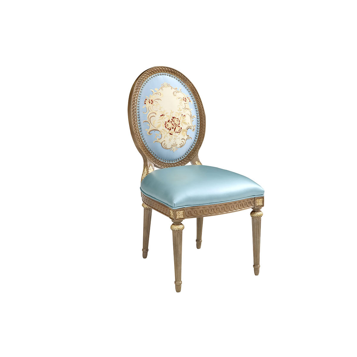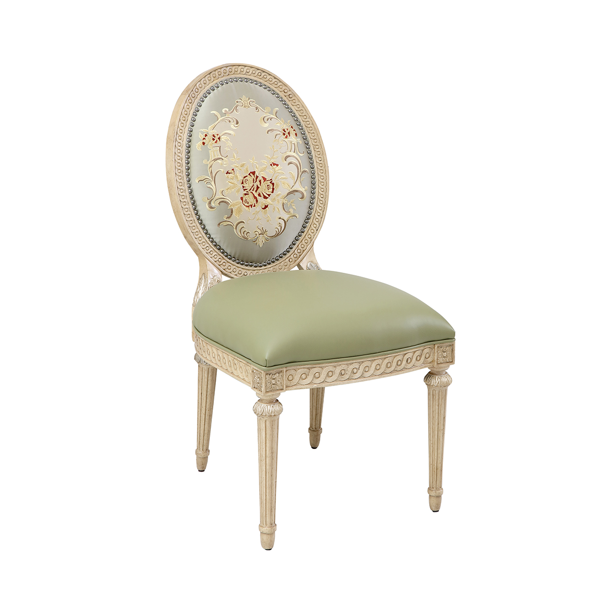 * 參考18世紀(jì)法國路易十六時期涂金扶手椅古董設(shè)計,并結(jié)合同時期的圓面背板設(shè)計。配上精致的連續(xù)雕刻和貼金鉑工藝、錐形腳設(shè)計、觸感舒適的布藝和包有豐厚的填充物坐墊和靠背。