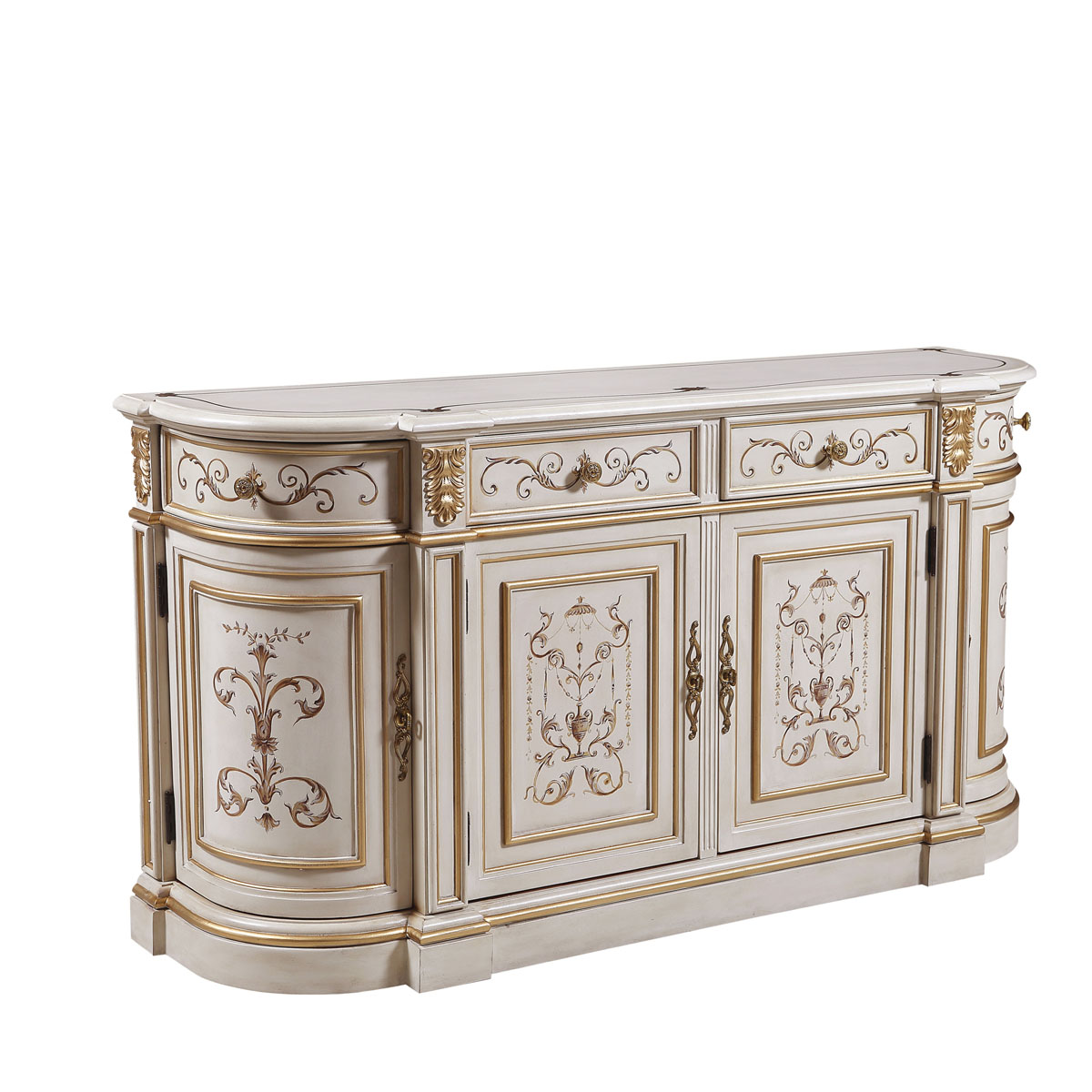 * 以意大利美麗而古老的城市維羅納為設(shè)計(jì)靈感,采用了多款手繪圖案,如寓意平安如意的花瓶裝飾、有“淑女之淚”雅稱的鈴蘭、傘形及珠寶裝飾、清新動人的花草等,配以帶仿古效果的色澤痕跡和閃耀的貼金箔工藝,來表現(xiàn)出藝術(shù)家具獨(dú)特的氣質(zhì)和內(nèi)涵,精彩演繹了意大利人對奢華絢麗的寵愛。