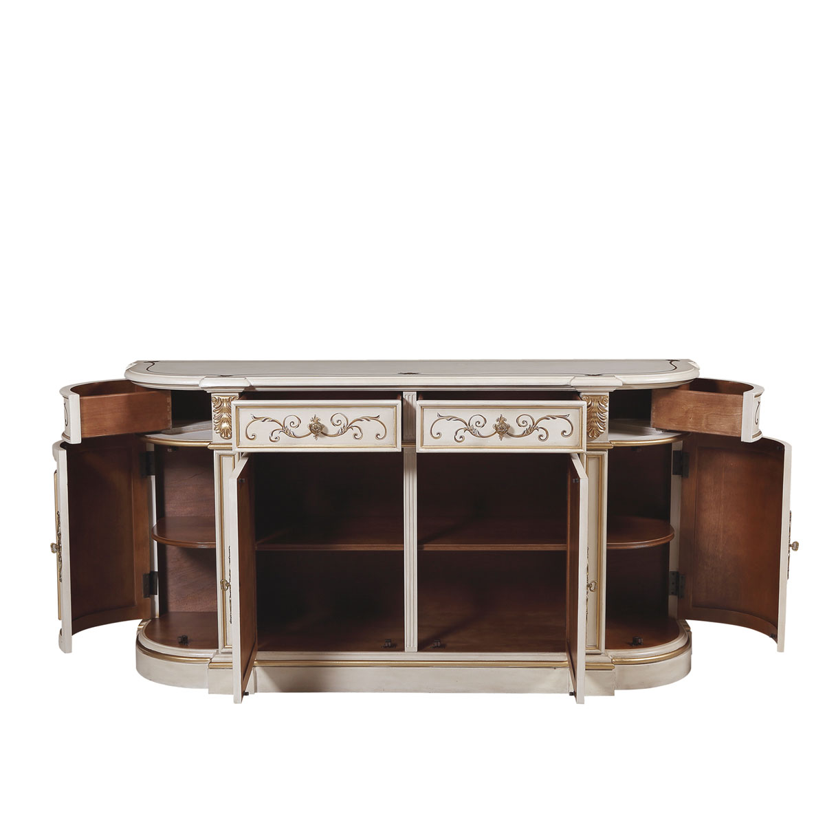 * 有四個儲物功能抽斗 ,其底部采用硬木實(shí)木滑軌 * 四扇實(shí)木門板,門內(nèi)帶有-塊活動層板; * 腳底部裝有可調(diào)腳釘