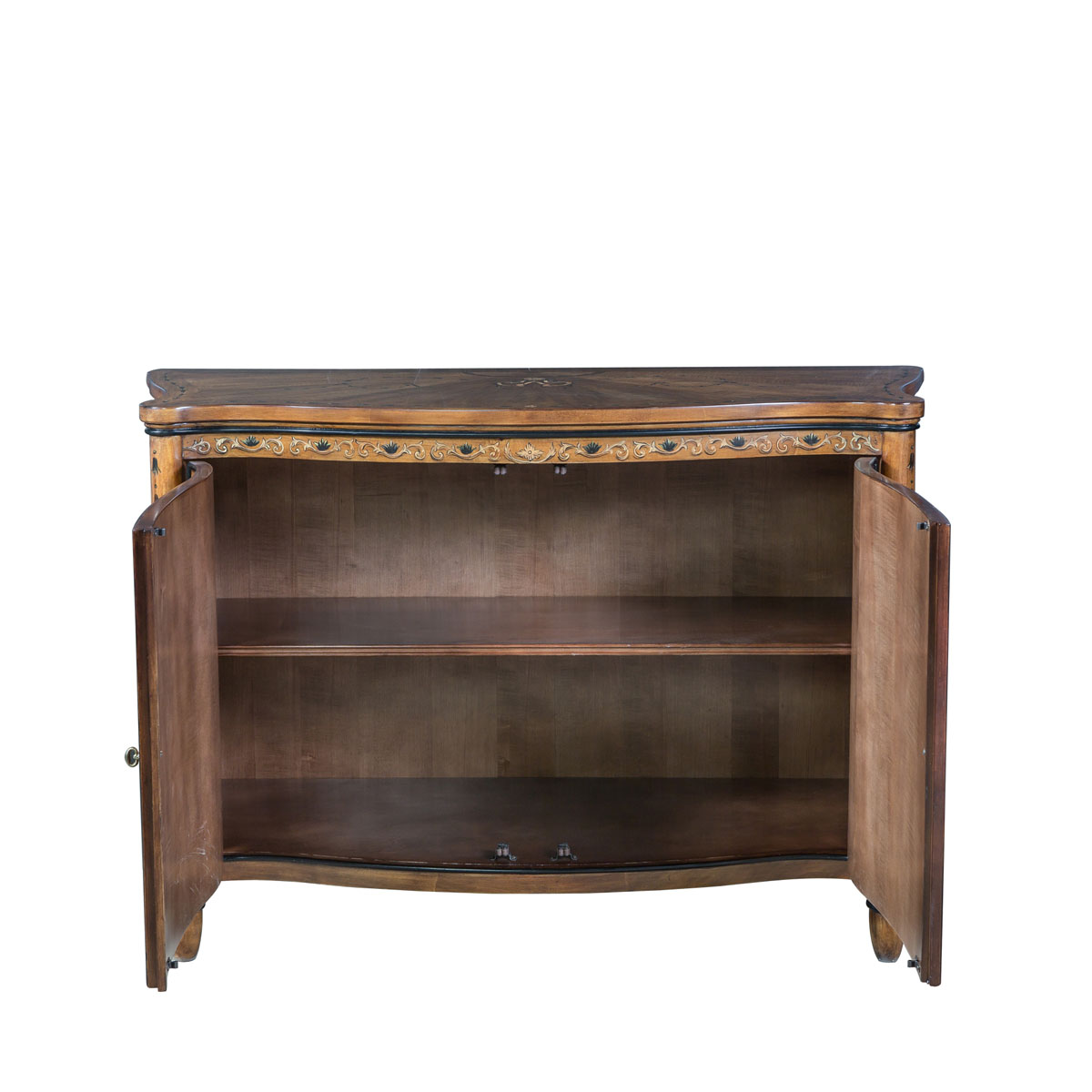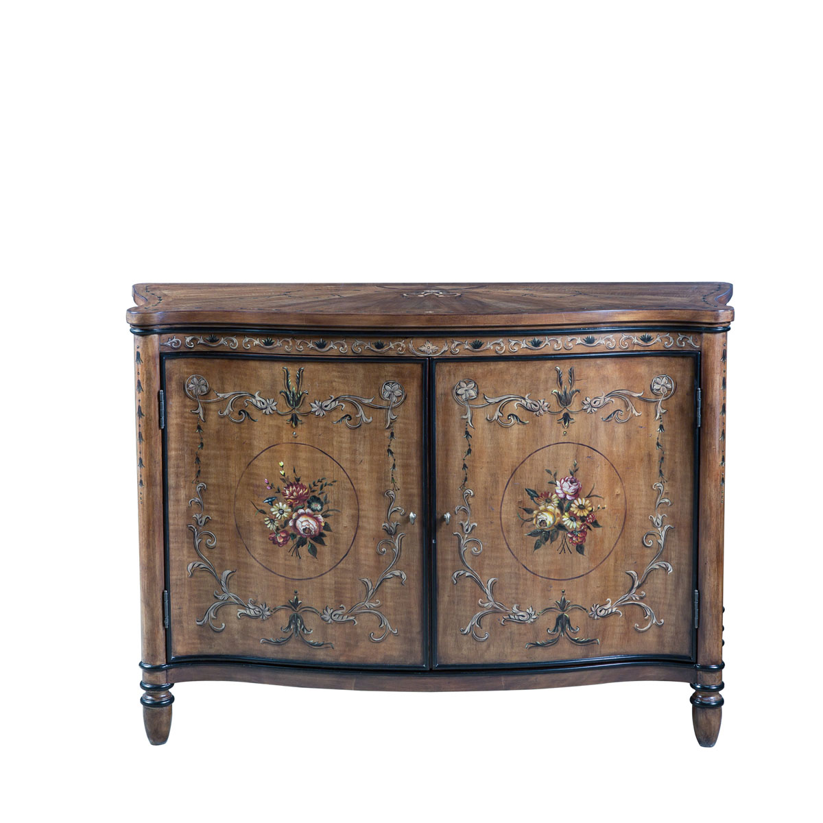 * 花紋圖案都是經(jīng)過專業(yè)工藝師精心繪制而成; * 兩扇彩繪實(shí)木門板,門內(nèi)各在一塊層板; * 腳底部裝有可調(diào)腳釘;